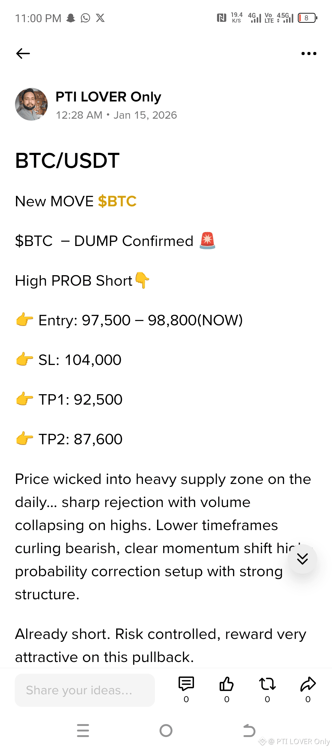 My last BTC Update 15 January dump confirmed 👍💯 accurate update and all tp hitt successfully ✅