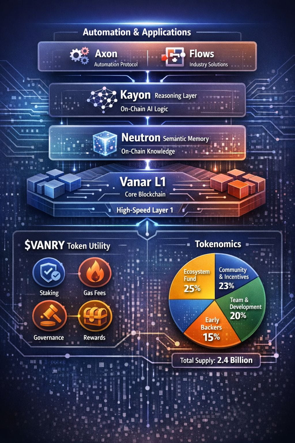 VanarchainPositioning itself as an AI-native Layer 1 built for Web3 apps that don’t just execute code, but can also “understand” data and act on it more intelligently. The core idea is simple: most blockchains are great at moving tokens and running smart contracts, but they struggle with real-world data, documents, compliance, and automation. Vanar’s approach is to make data more usable on-chain, so builders can create applications for payments, real-world assets, and consumer experiences (like gaming) without relying on fragile off-chain glue. On Vanar’s own stack description, the network is designed as a multi-layer system: a modular L1 base, a semantic memory layer (Neutron), and an on-chain reasoning layer (Kayon), with automation and “industry application” layers planned (Axon, Flows). �