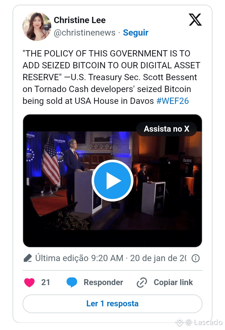 No tal do Fórum Econômico Mundial lá em Davos, o Scott Bessent, que é o secretário do Tesouro dos Estados Unidos, foi perguntado sobre o que o governo pretende fazer em 2026 com essa tal reserva de Bitcoin. A resposta dele foi direta: vão continuar firme na ideia de não vender as moedas que foram apreendidas.