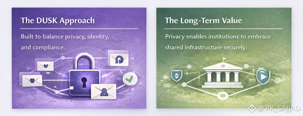 The Importance of this Approach is that financial systems are often used by more than just individuals; Institutions and Regulators and Service Providers also need infrastructure which supports Privacy while providing Oversight. For Users this approach provides reduced exposure to Data Leakage and Unintentional Profiling; and for the Overall Ecosystem, DUSK helps to create a Model that does not position Privacy and Regulation as Opposing Forces but rather as Complementary Requirements in a single unified Infrastructure.