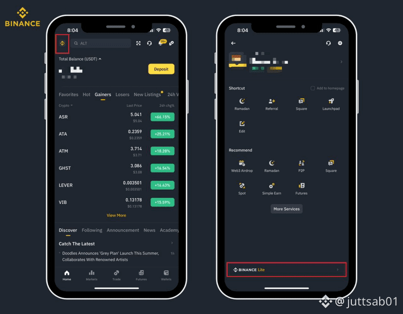 Tap on the top left corner of your home screen, you’ll see Binance Lite written at the bottom