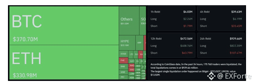 За сутки объем принудительно закрытых позиций достиг $929,66 млн. Из этой суммы $822 млн пришлось на длинные позиции.