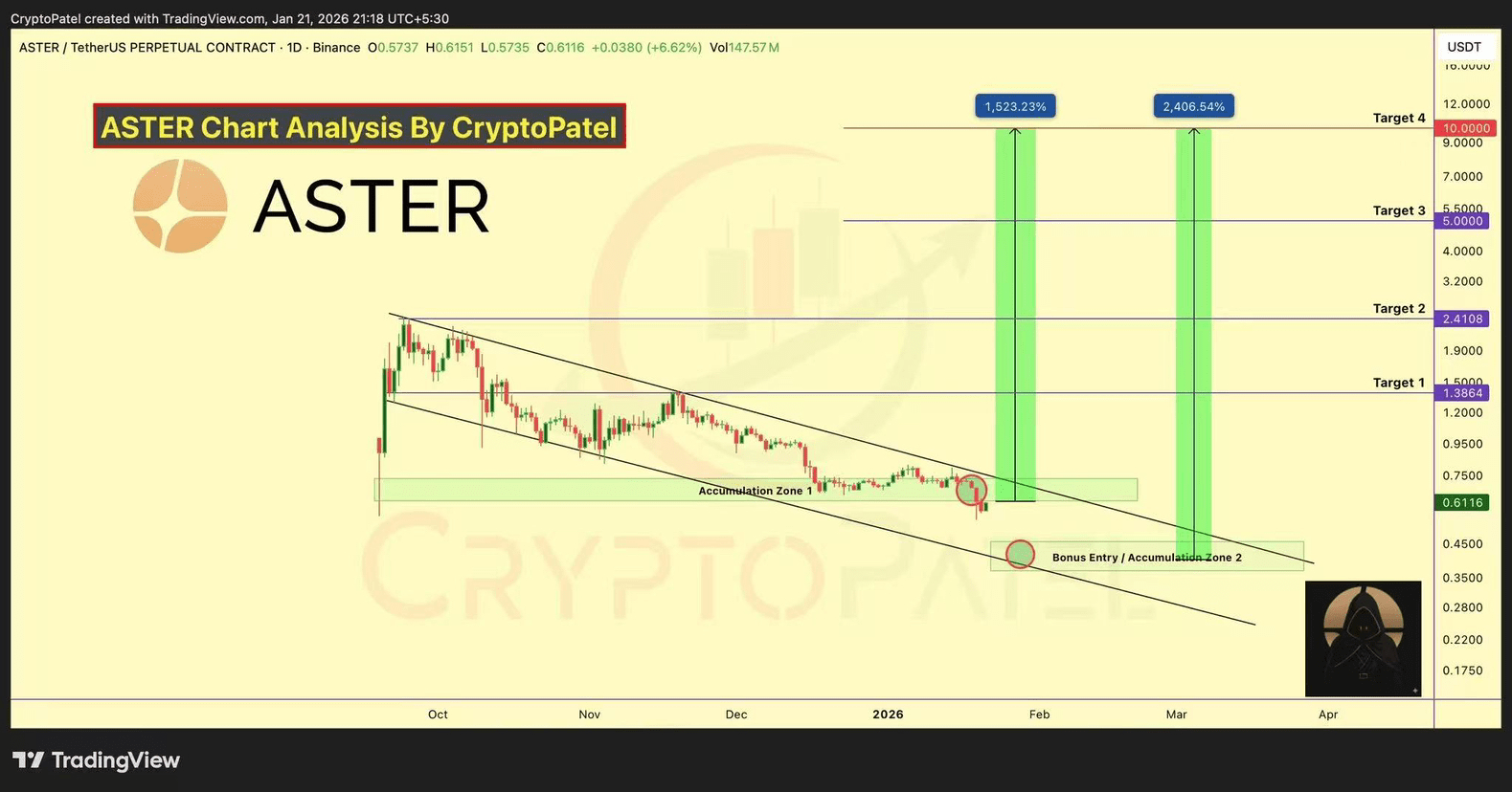Attualmente sembra essere una fase iniziale di accumulo con un obiettivo di 5-10 dollari, con un potenziale a lungo termine di 20-50 dollari.#aste #AsterDEX