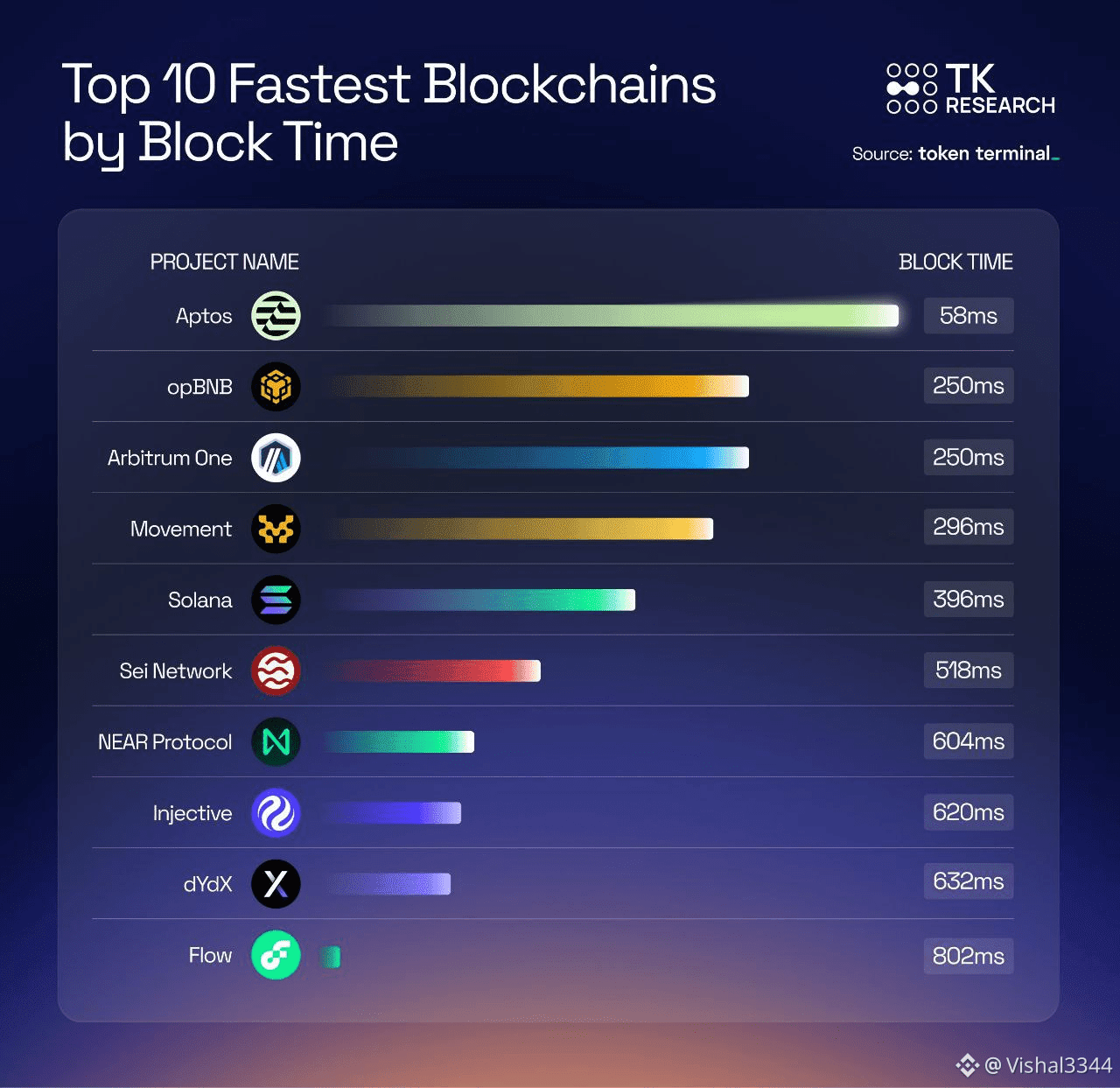 Based on recent data from Token Terminal & ecosystem benchmarks, here are the Top 10 fastest block time leaders reshaping blockchain performance 👇