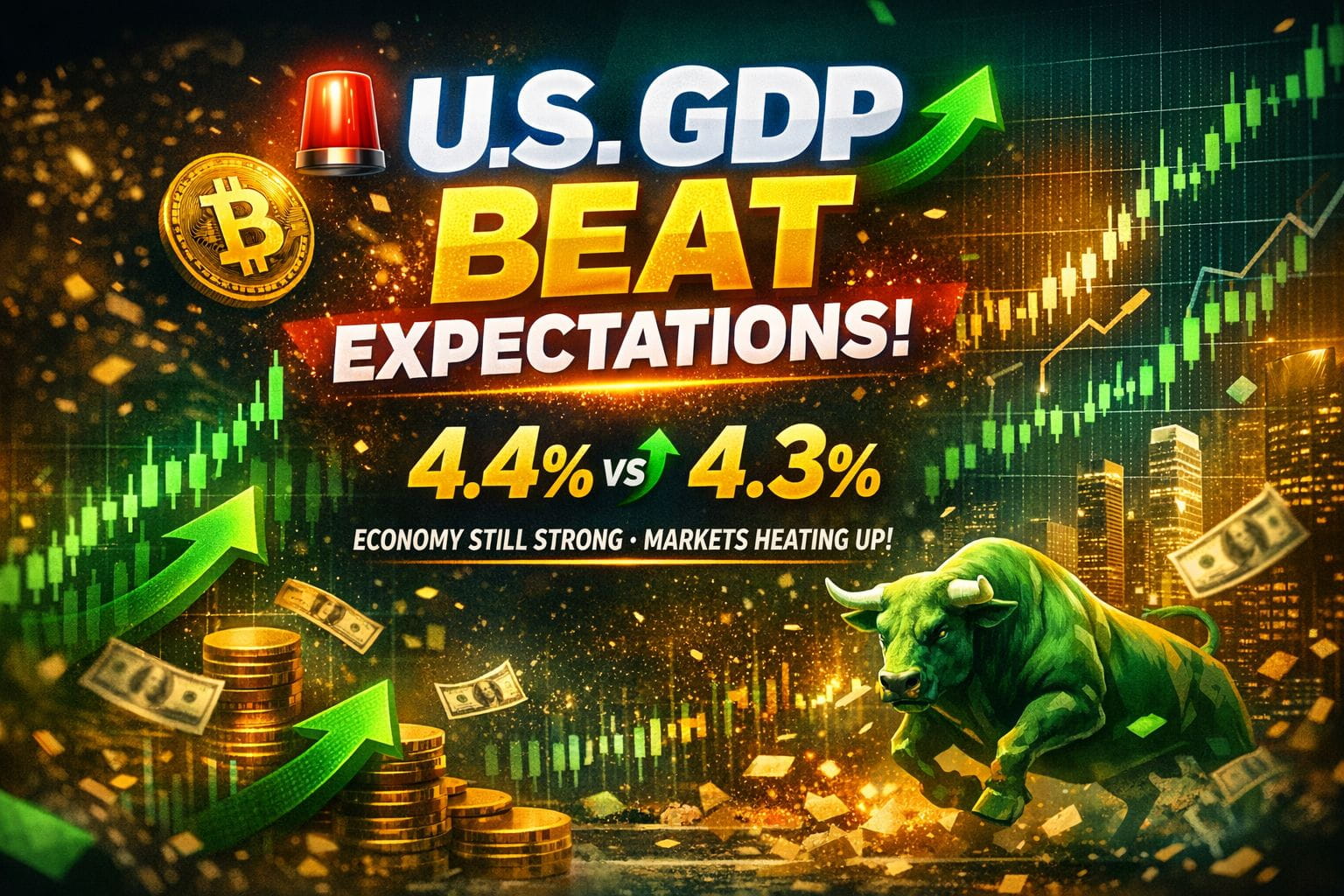 U.S. GDP just came in at 4.4% vs 4.3% expected. Small beat, but it matters. The economy is still strong and momentum isn’t slowing.