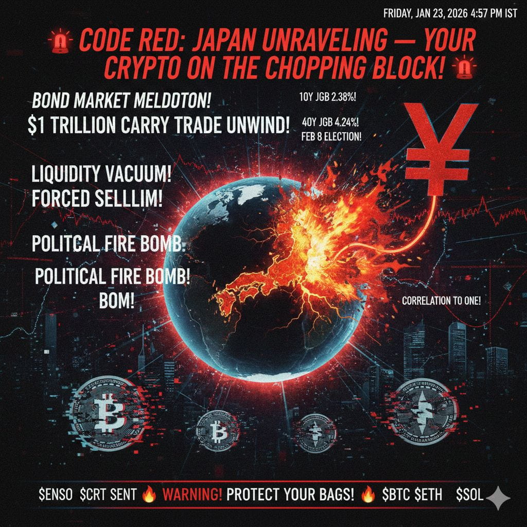 I sussurri si stanno trasformando in urla. Il Giappone, il Godzilla finanziario che pensavamo stesse dormendo, si è appena svegliato, e sta venendo per TUTTO – specialmente per la tua preziosa cripto. Dimentica "48 ore" – la miccia è stata accesa, e ora il BOOM sta avvenendo al rallentatore, scuotendo l'economia globale fino al suo nucleo!