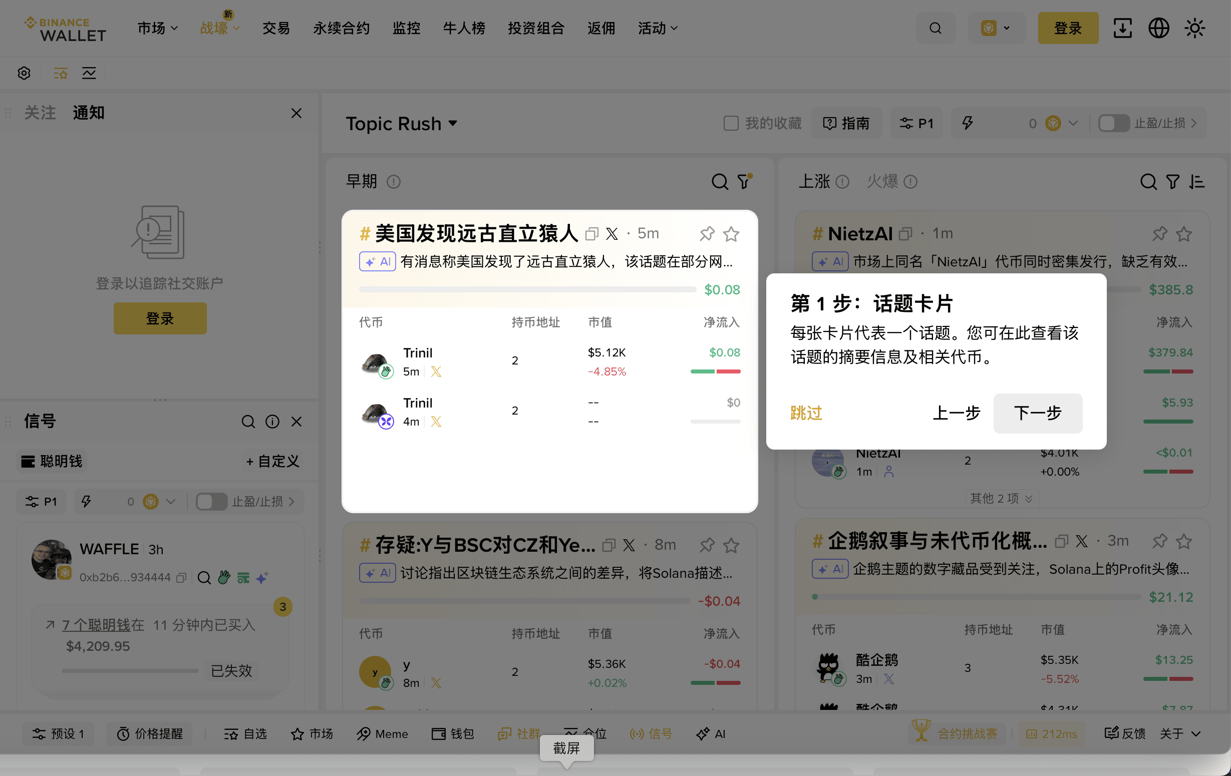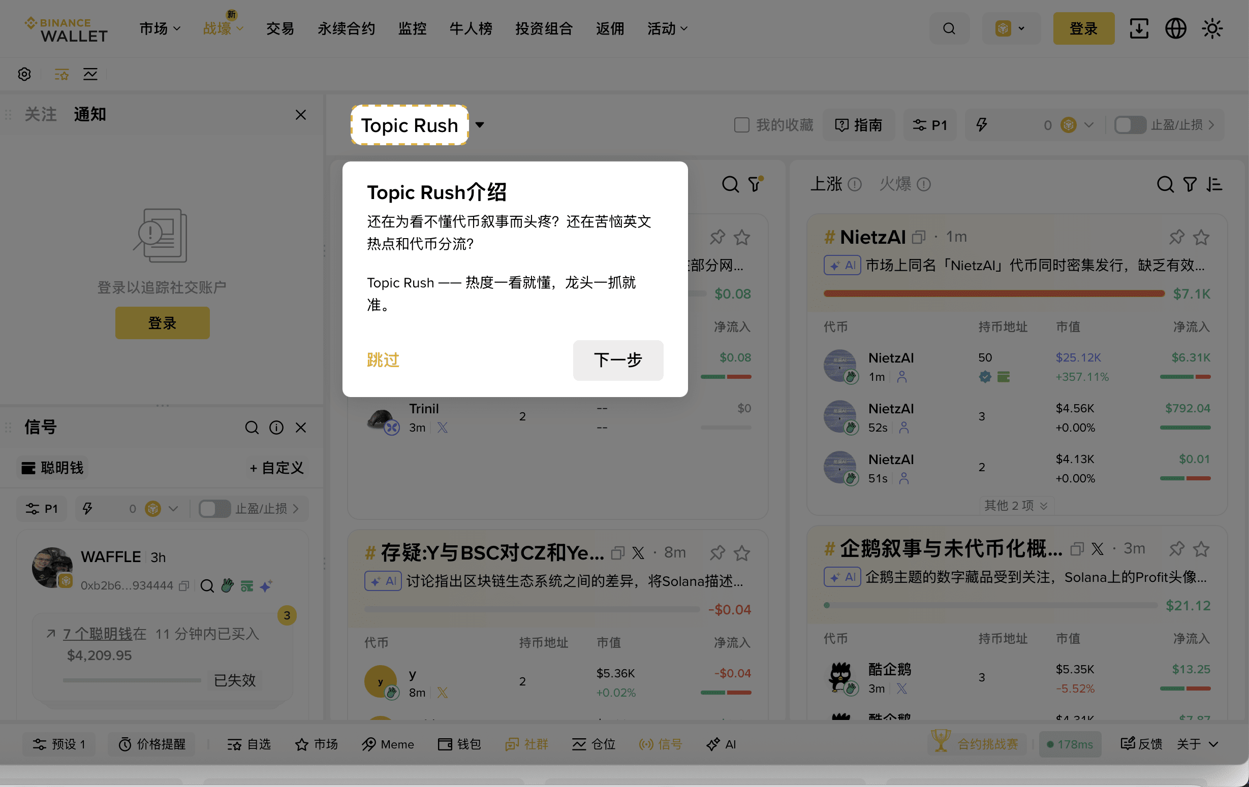 Recentemente ho provato Topic Rush del portafoglio web Binance, è davvero un salvatore nell'era del sovraccarico informativo. Prima, per inseguire le tendenze on-chain, dipendevo dalla velocità delle mani, ora conto sull'IA.
