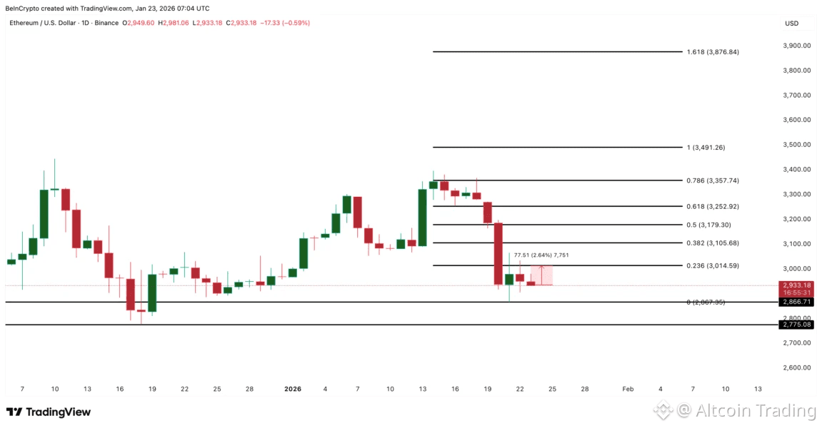 Курс Ethereum демонстрирует признаки стабилизации после резкой коррекции. Актив торгуется вблизи отметки $2950. Ранее цена снизилась на 15,6% от январских максимумов. Затем котировки отскочили от ключевой зоны поддержки.