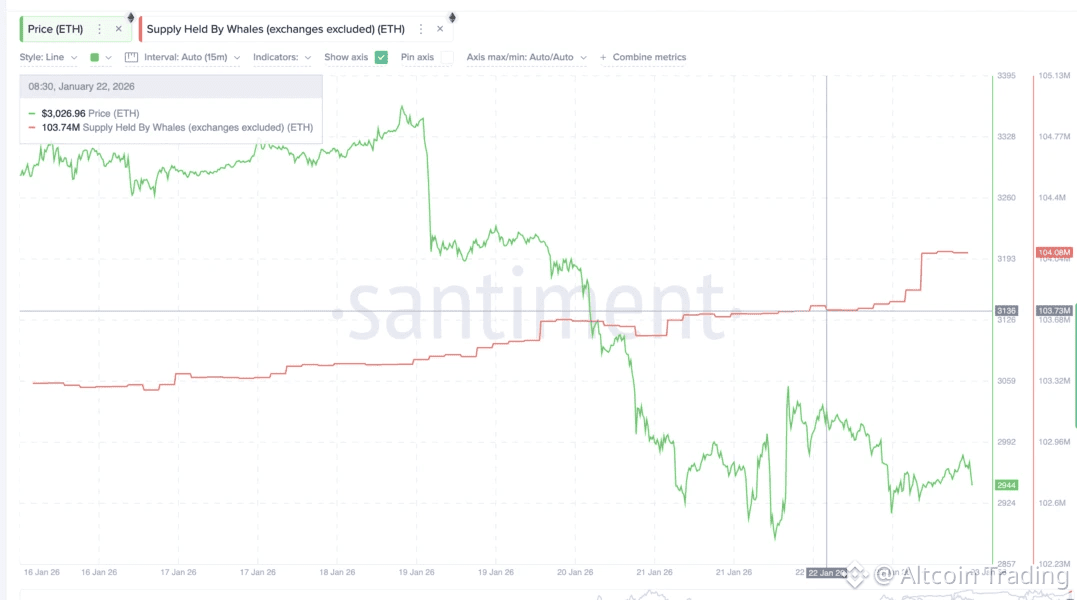 Крупные держатели отреагировали на изменение рыночной конъюнктуры. За последние 24 часа балансы кошельков инвесторов выросли. Речь идет о счетах без учета бирж. Показатель увеличился со 103,73 млн до 104,08 млн ETH. Прирост составил около 350 000 монет за одни сутки.