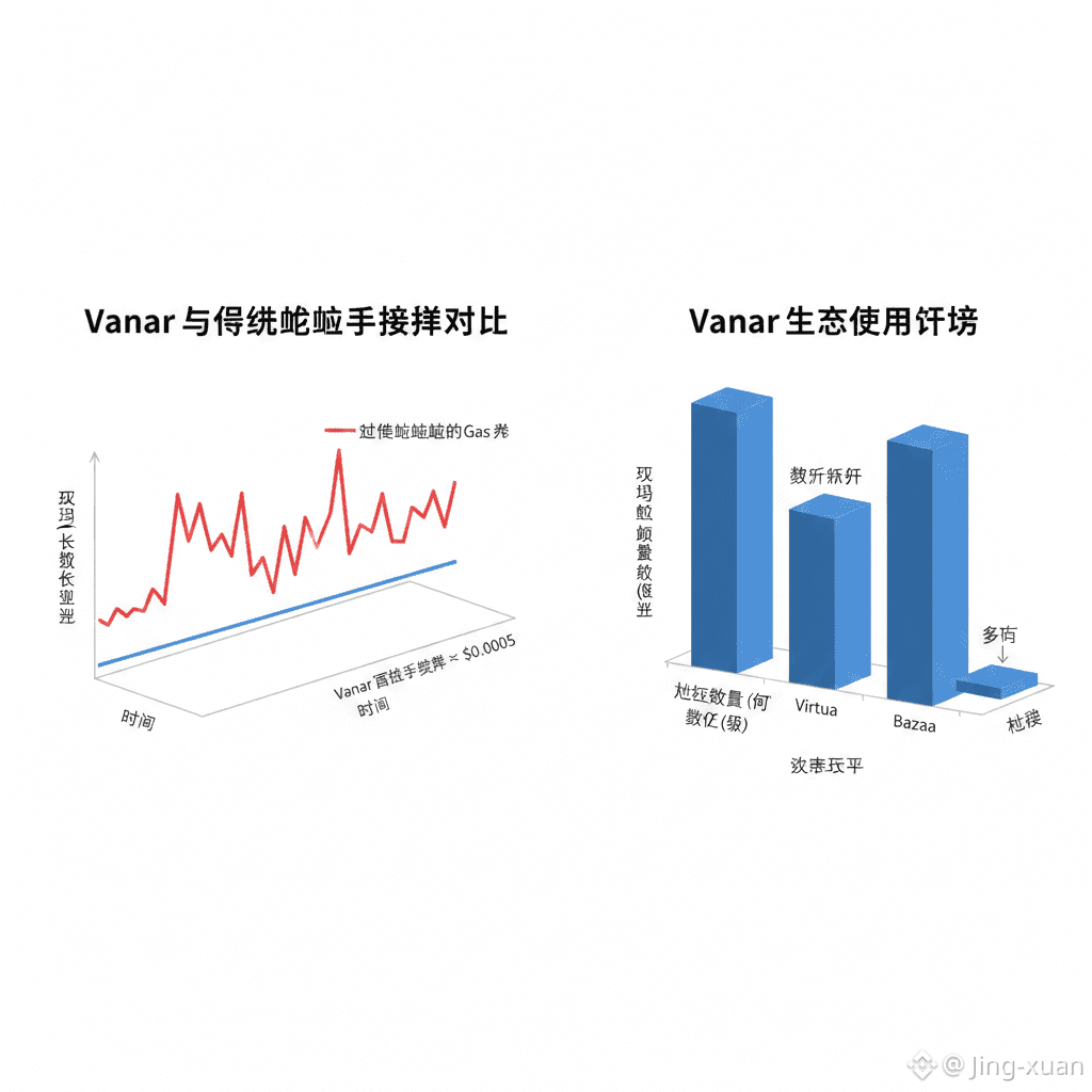 这看似只是一个小细节,但一旦你站在游戏、数字市场或品牌体验的角度思考,就会发现它的重要性。手续费的不确定性不只是让人烦躁,它会直接破坏产品设计逻辑。玩家不想思考 Gas,品牌也不希望用户质疑为什么一个“看起来免费的操作”突然需要付费。Vanar 的手续费设计,很明显来自于真正做过消费级产品、并为糟糕用户体验付出过代价的人。