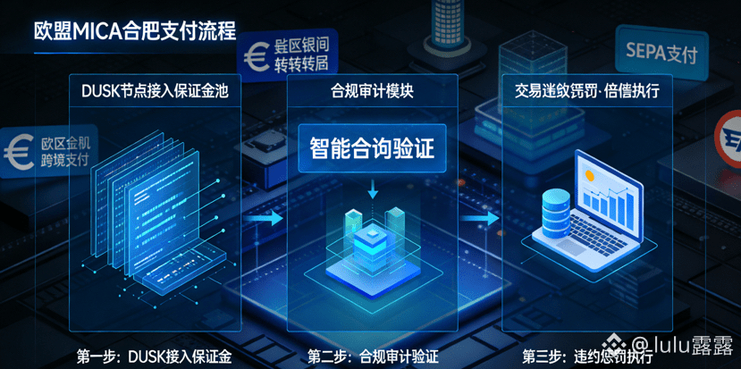 作为主打欧盟MiCA合规的隐私公链,Dusk的MiCA合规支付通道让DUSK从单纯的支付手段,变成了合规交易的技术载体,这也是我觉得DUSK能在合规金融领域落地的关键。我研究过欧盟《加密资产市场法规》的要求,也拆解了MiCA合规支付通道的代码,发现DUSK在这个通道里承担了三个核心作用:一是作为通道的接入保证金,任何机构或个人想要接入这个通道,都需要质押一定数量的DUSK,质押量和通道的交易额度直接挂钩,交易额度越高,需要质押的DUSK越多;二是作为合规审计的费用,通道内的每一次监管审计,都需要用DUSK支付给审计节点,这些节点主要是由持有并质押DUSK的验证者担任,保障审计的专业性和公正性;三是作为交易违约的惩罚金,如果通道内的交易出现违约行为,比如未按监管要求完成信息披露、交易双方存在欺诈行为,质押的DUSK会被扣除,用于补偿受损方。而且这个支付通道的手续费,会根据通道的交易拥堵情况动态调整,其调整机制基于Dusk网络的移动平均Gas价模型,选取最近5760个区块的Gas价取平均值,避免了Gas费的大幅波动,而这个模型的运行,也需要节点持有一定数量的DUSK才能参与计算。比如一家欧盟的金融机构想要在链上完成跨境支付,通过MiCA合规支付通道,既可以用零知识证明保护交易隐私,又能通过DUSK的质押和支付完成合规审计,这就让隐私交易和监管要求不再矛盾,而DUSK就是实现这种平衡的关键。