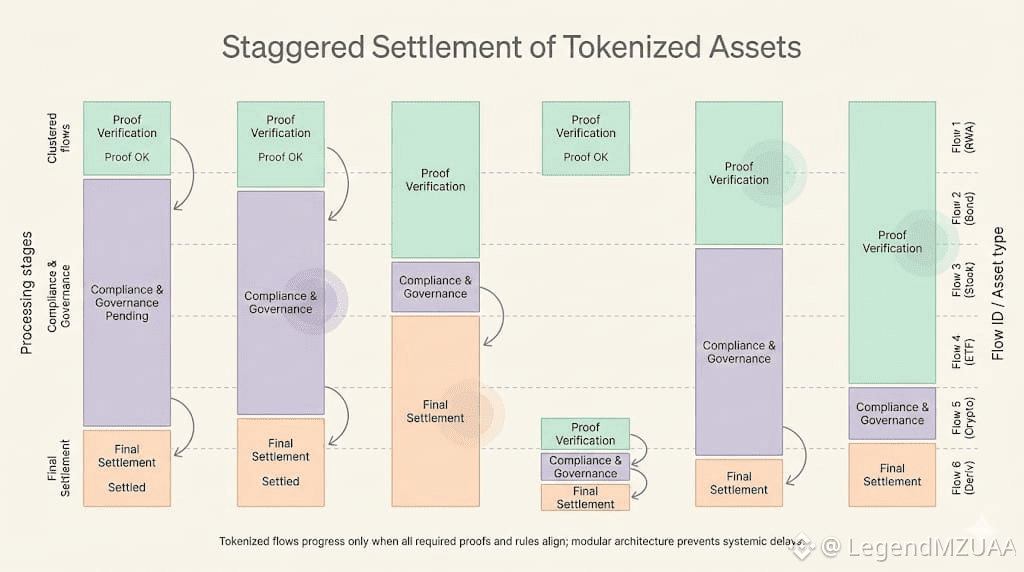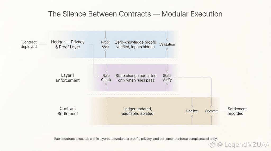 Sometimes a contract executes instantly. Sometimes it pauses, waiting for proofs to validate. You begin to feel the rhythm. Not every deployment moves the same way. The order of proofs, the isolation of modules, the timing of Layer 1 settlement,it all matters. You notice it because you cannot skip it. You cannot force it.