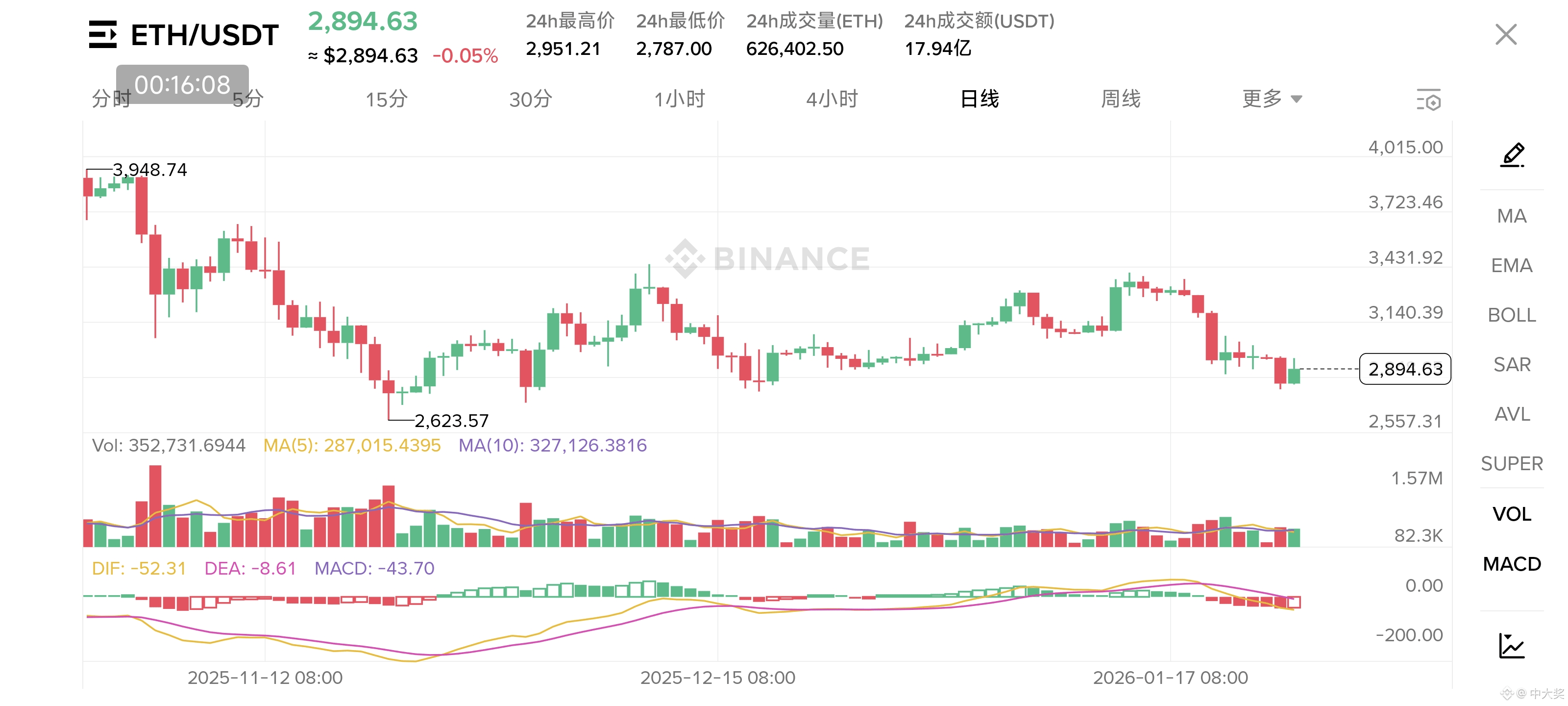 从技术层面来看,比特币和以太坊的走势有共性也有细节差异,日线上,两者的价格都把布林带下轨给撑开了,这说明下跌的势头确实比较猛;而且MACD指标一直在释放空头信号,大方向上还是偏空的。