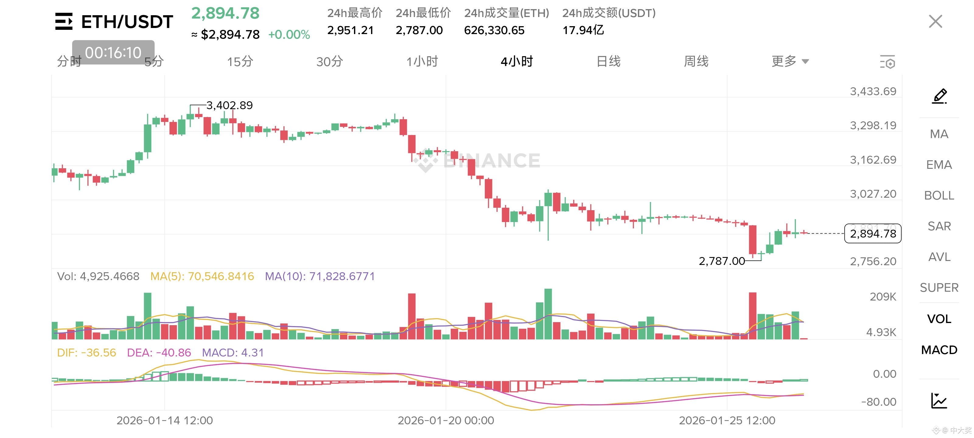 以太坊$ETH 的短期阻力集中在2900-2930区间,这里曾是此前横盘整理的区间下沿,跌破后自然转化为较强压制位。支撑端则重点看向2800-2750区域,该位置对应去年11月份的下跌低点,具备较强的支撑有效性;一旦此处支撑失守,市场抛售情绪可能再度蔓延,价格或进一步下探2400及更低水平。