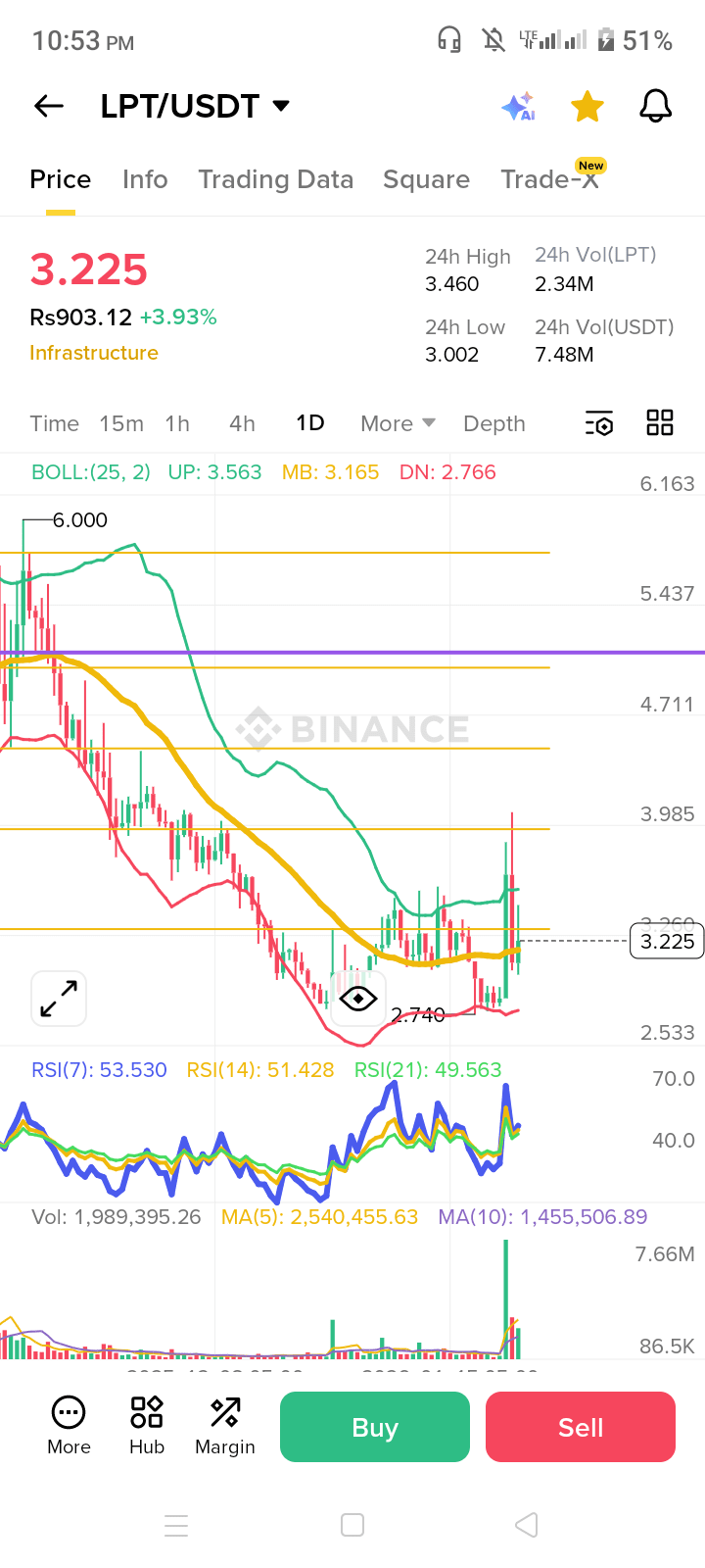 👉 Al momento della scrittura,$LPT sta commerciando intorno a $3.21 dopo una recente volatilità.