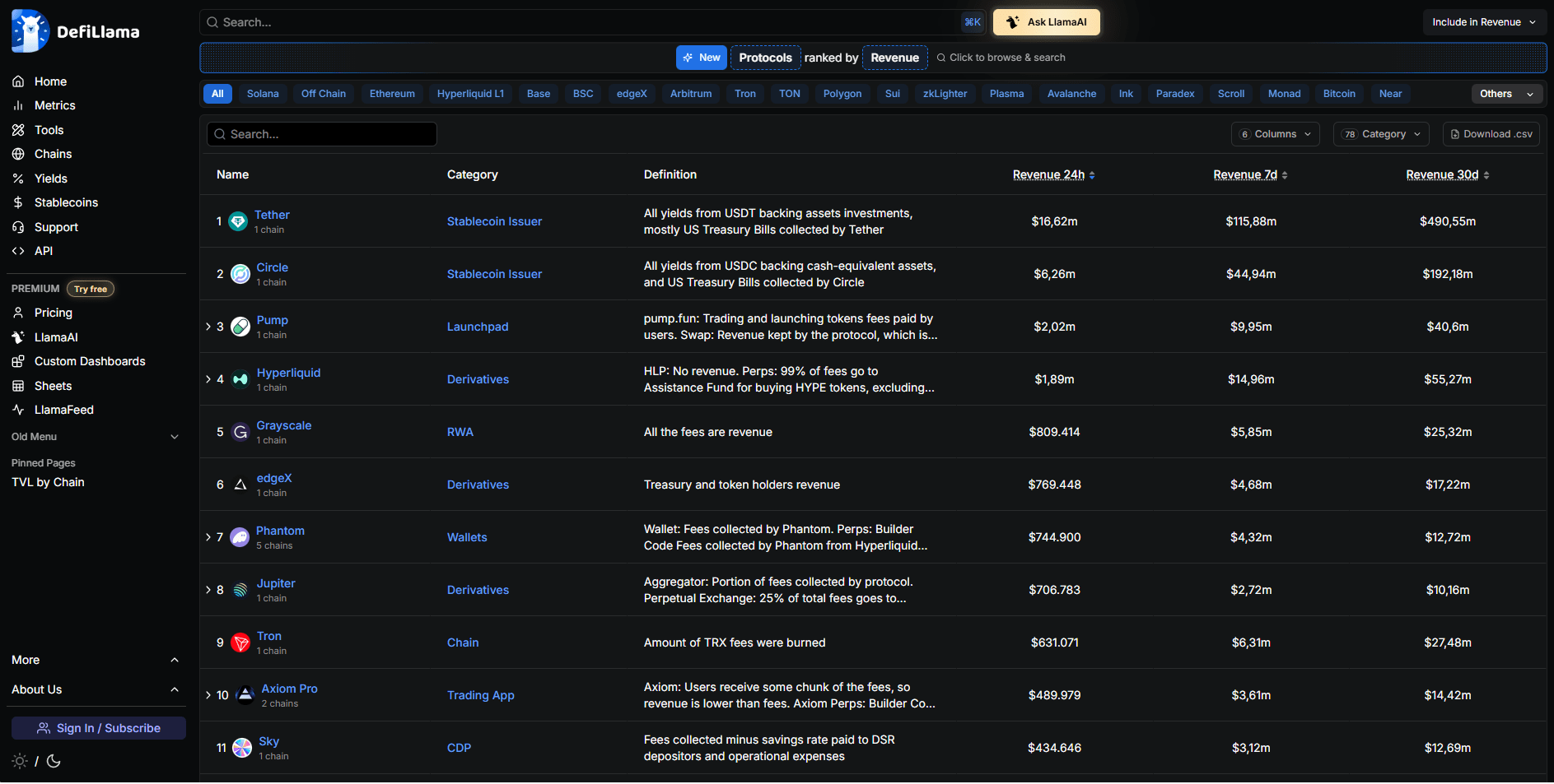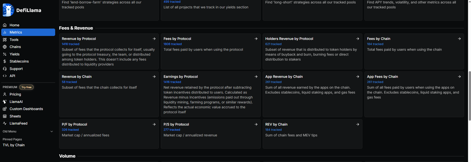 Strumenti come Defillama, Tokenterminal, Dunes sono strumenti utili per analizzare le entrate on-chain di un progetto in modo visivo.