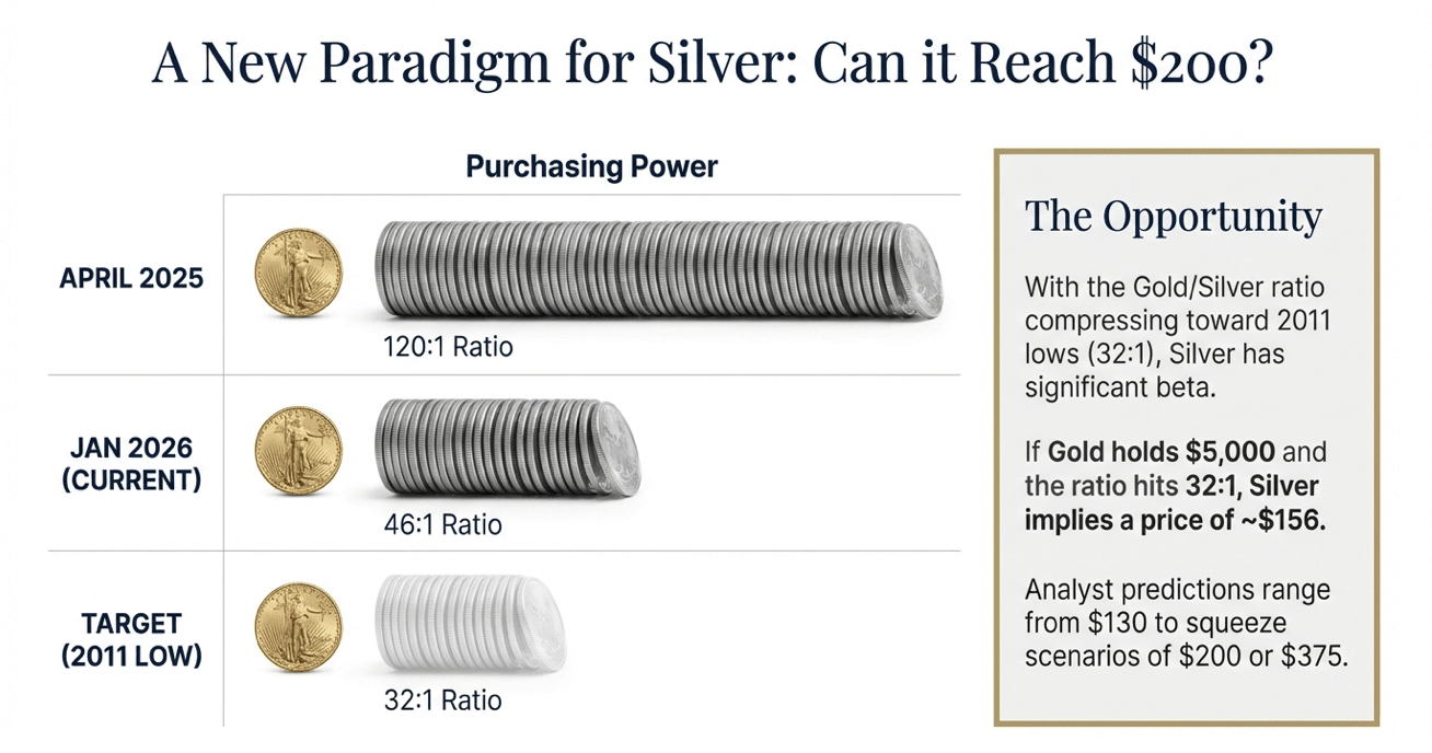 “L'argento può raggiungere $200?” è davvero una domanda sul rapporto e sulla rivalutazione industriale. Se il rapporto Oro/Argento torna alla zona storica di 32:1, l'argento potrebbe non avere bisogno di una nuova storia. Ha solo bisogno che i mercati accettino che l'argento non è solo un metallo prezioso, ma un input essenziale per energia e tecnologia. Quando il ruolo cambia, i multipli di valutazione seguono.