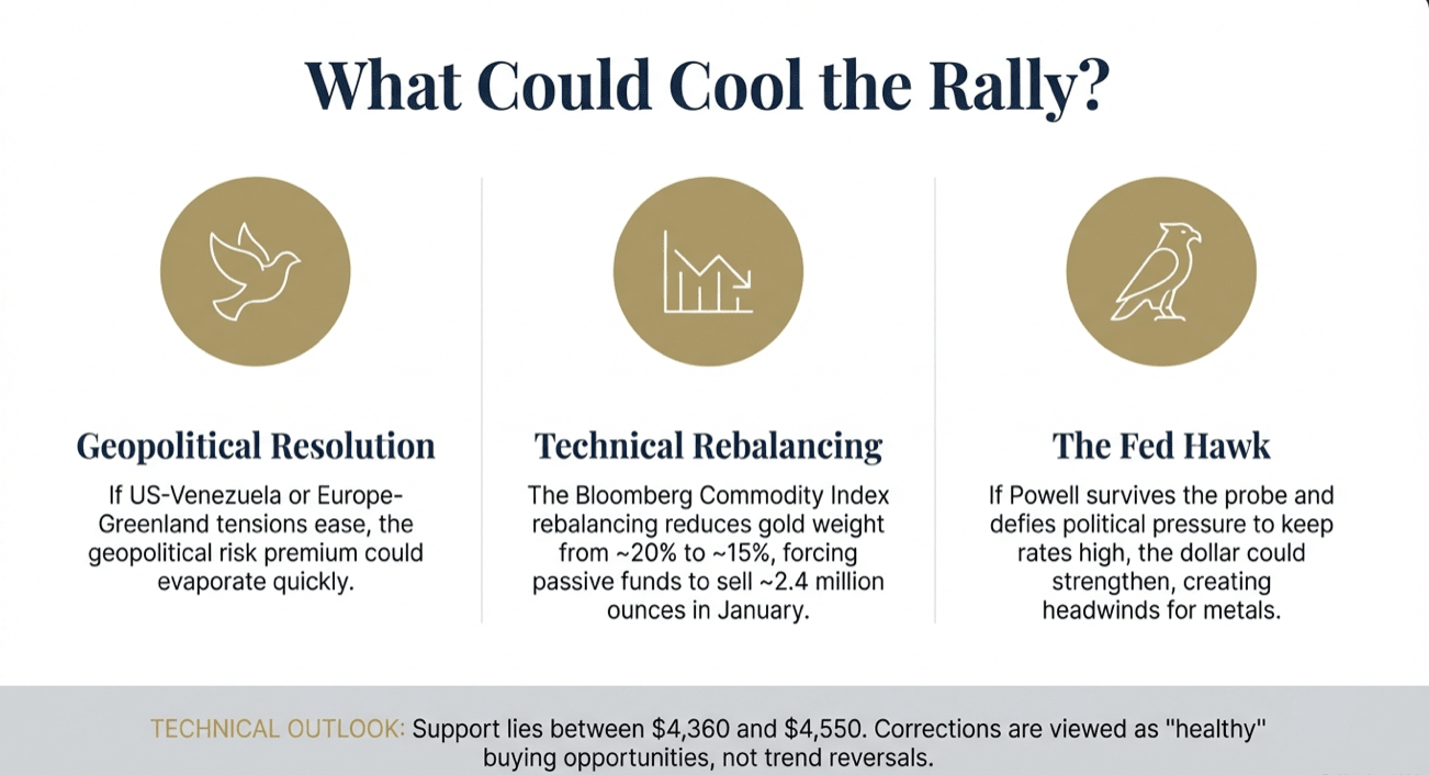 Una forte tendenza ha sempre bisogno di fasi di raffreddamento. Ciò che rallenta il movimento non è un tweet, ma i cambiamenti di probabilità: un allentamento geopolitico, un USD più forte, rendimenti reali più elevati o un ribilanciamento forzato dei fondi. L'errore comune è trattare i ribassi come un fallimento. Nei grandi cicli, i ribassi spesso eliminano la leva debole e costruiscono una base per il prossimo passo.