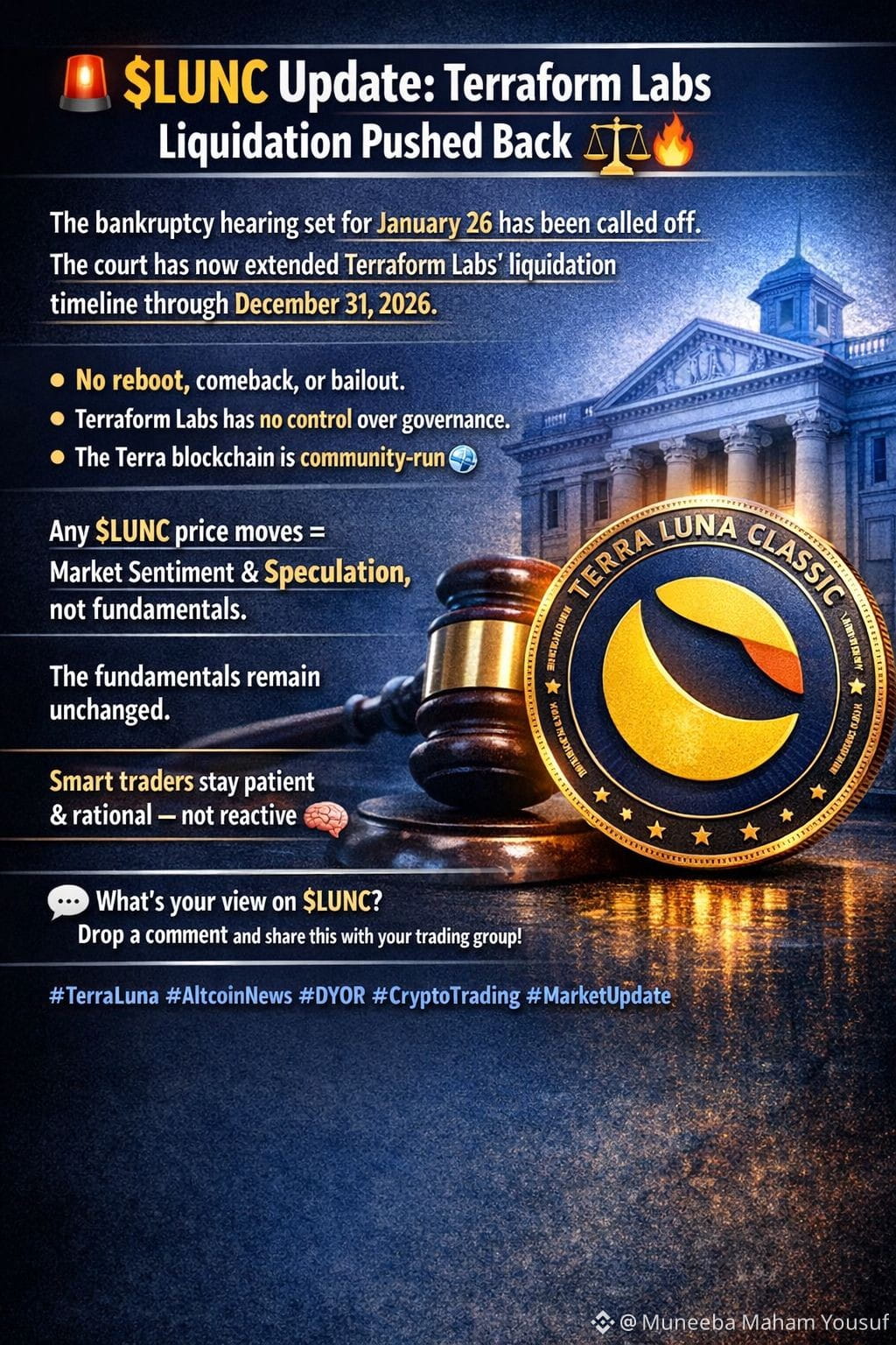 The bankruptcy hearing that was scheduled for January 26 has been called off. The court has now extended Terraform Labsâ liquidation timeline through December 31, 2026.