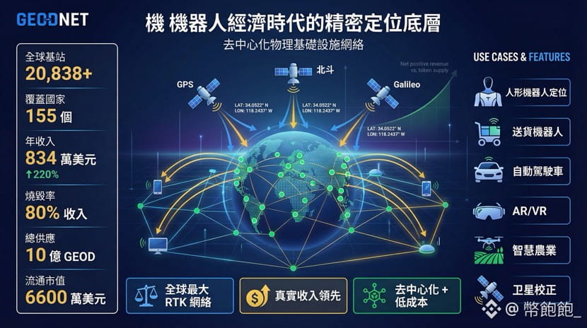 * 機器人經濟剛需:人形機器人(像 Tesla Optimus)需要厘米級定位室內外無縫,GEODNET 是少數能提供的去中心化方案。