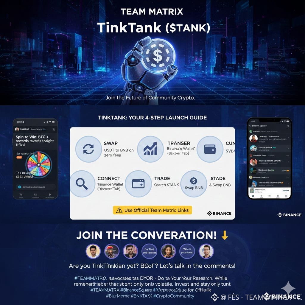 The Team Matrix community has officially taken the next step in its evolution with the launch of TinkTank ($TANK). Known for their high-energy livestreams and "Spin to Win" rewards, the community is now rallying behind $TANK as a symbol of unity and long-term commitment within the Binance ecosystem.