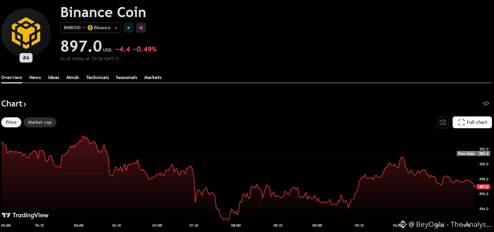 $BNB Chain’s native token, BNB, extended its recent advance, rising more than 5% to $893 as it nears the $900 resistance level.