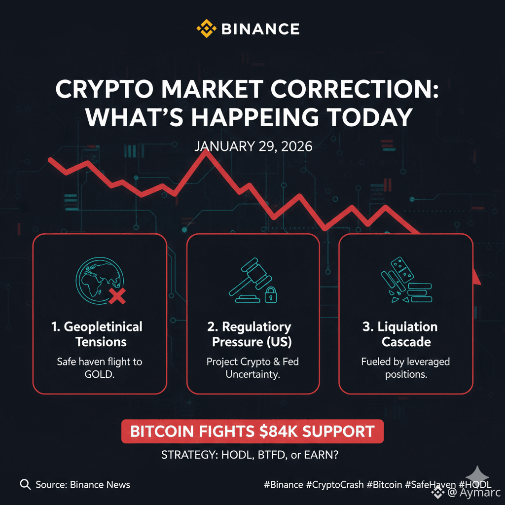 Si abriste tu app de Binance y viste velas rojas, no estás solo. El mercado cripto está atravesando una corrección importante este 29 de enero, con Bitcoin luchando por mantener el soporte de los $84,000 - $86,000.