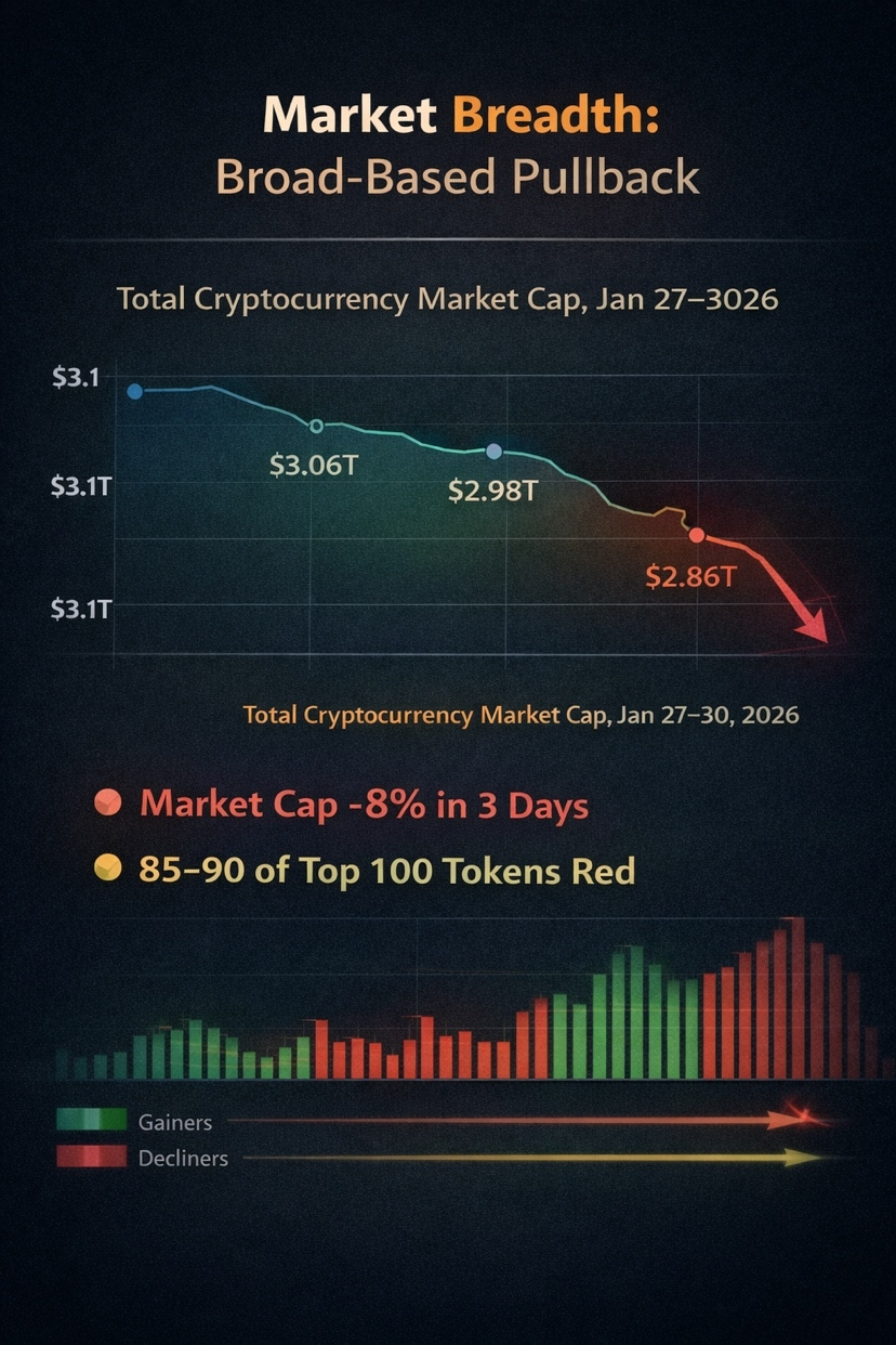 • Oltre l'85–90% dei token di principale capitalizzazione ha registrato scambi in rosso durante la sessione.