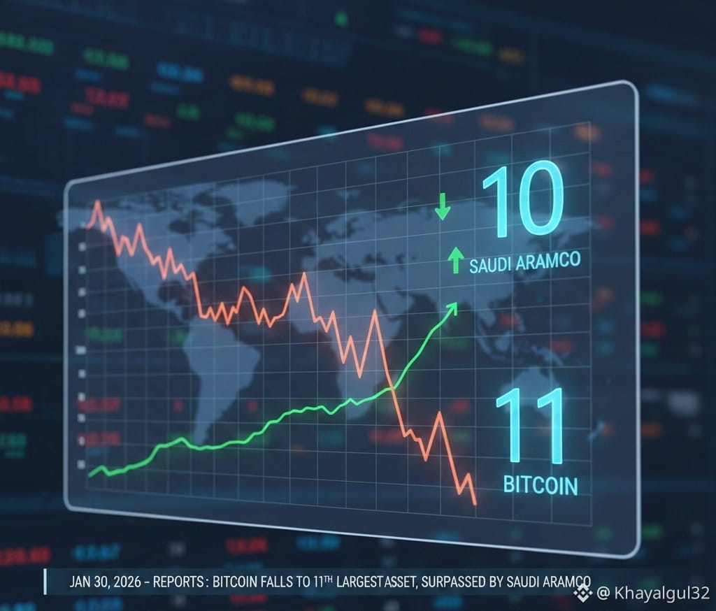 The global financial hierarchy has seen a significant reshuffle as $BTC slipped out of the world's top 10 assets. A contraction in its market valuation has pushed the leading $cryptocurrency down to the 11th position, clearing the way for the energy titan $BNB Saudi Aramco to reclaim its spot in the top 10.
