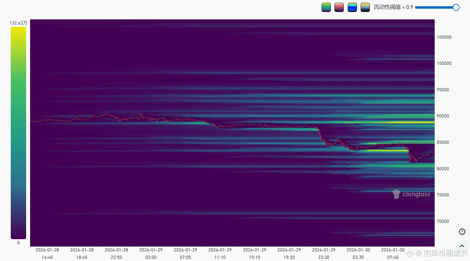 所以当价格真正跌破 83.5K 时,不论后面是直接崩还是反弹再下,80.5K 区域的流动性猎取几乎成为高概率事件。