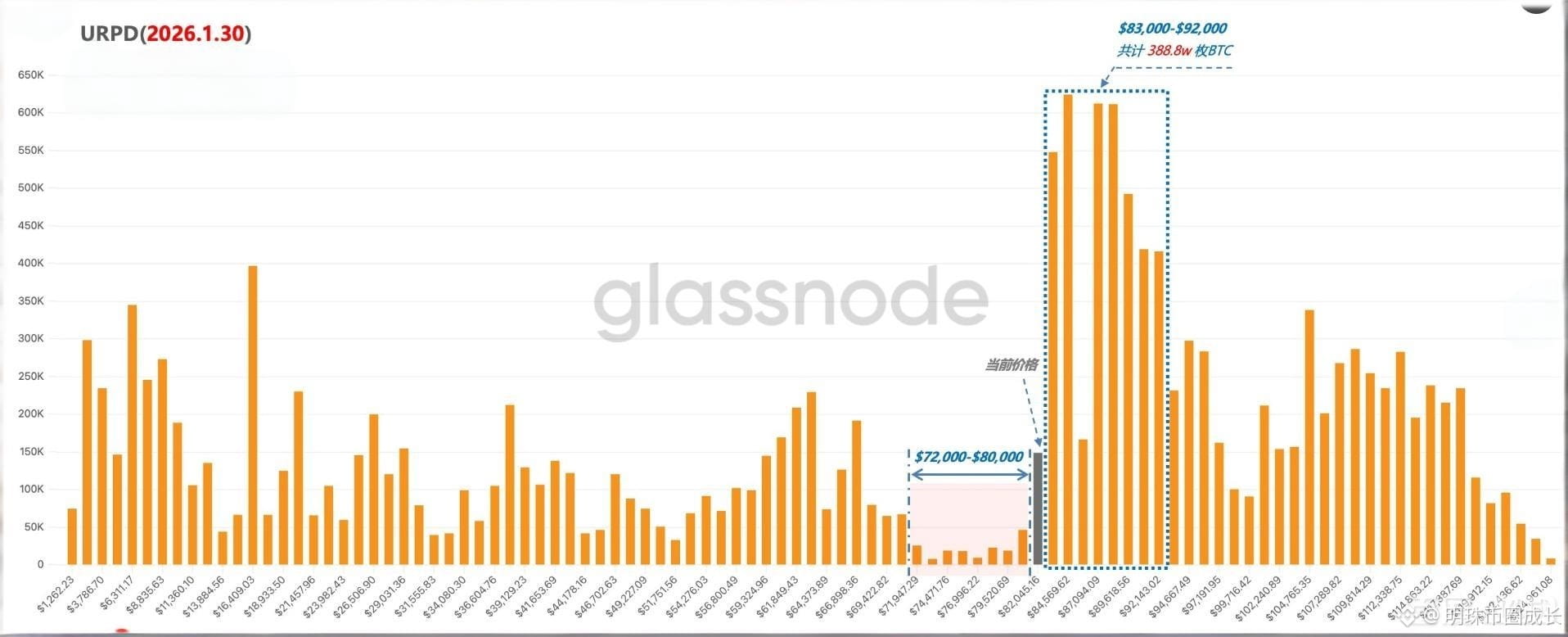 BTC 已跌破 83,000–92,000 筹码密集区,约 388 万枚 BTC 转为套牢盘,支撑转为阻力。