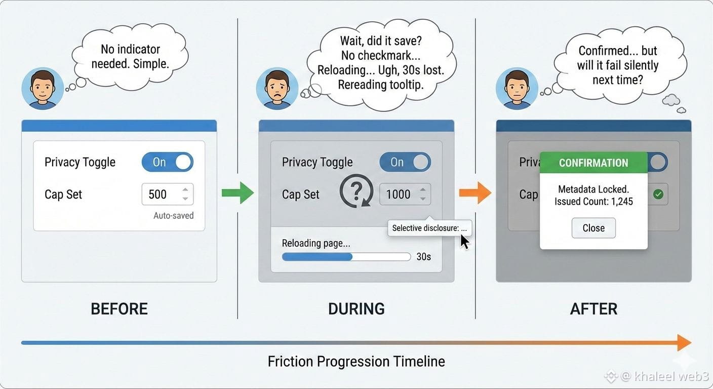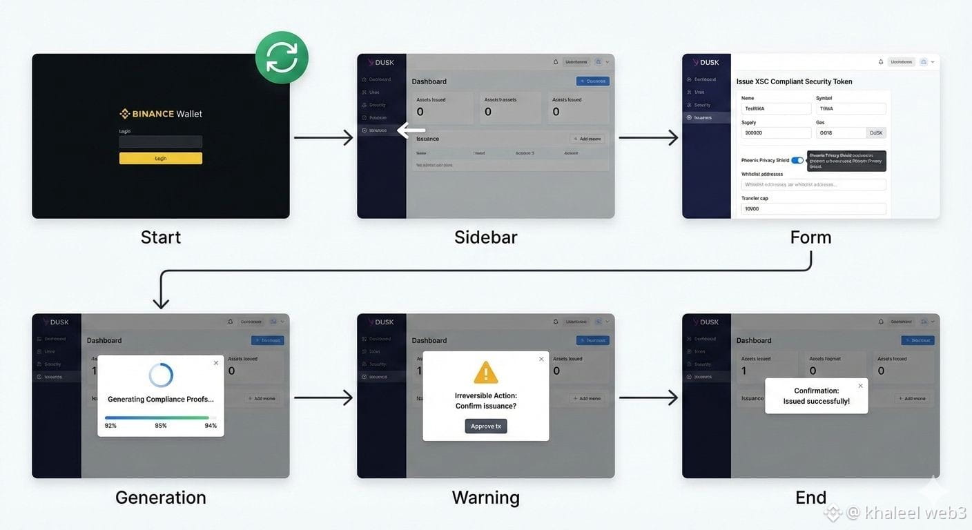 This reminded me of a 2022 gas fee spike during an ETH network congestion event where a similar issuance attempt failed midway and required restarting the whole process. Here the fixed low DUSK fee kept things predictable, but if network load increased during ZK proof computation the 4.2-second spinner might stretch longer and risk timeout like those old failures. Another hypothetical from my trades: imagine issuing during a period of heightened regulatory scrutiny similar to recent MiCA-aligned updates. The selective disclosure toggle would likely hold up well for audit trails without exposing full transaction details, unlike transparent chains where privacy add-ons often break compliance flows. A third scenario ties back to bear market staking attempts where silent failures went unnoticed until reload; that reload check I did here mirrors those moments exactly.