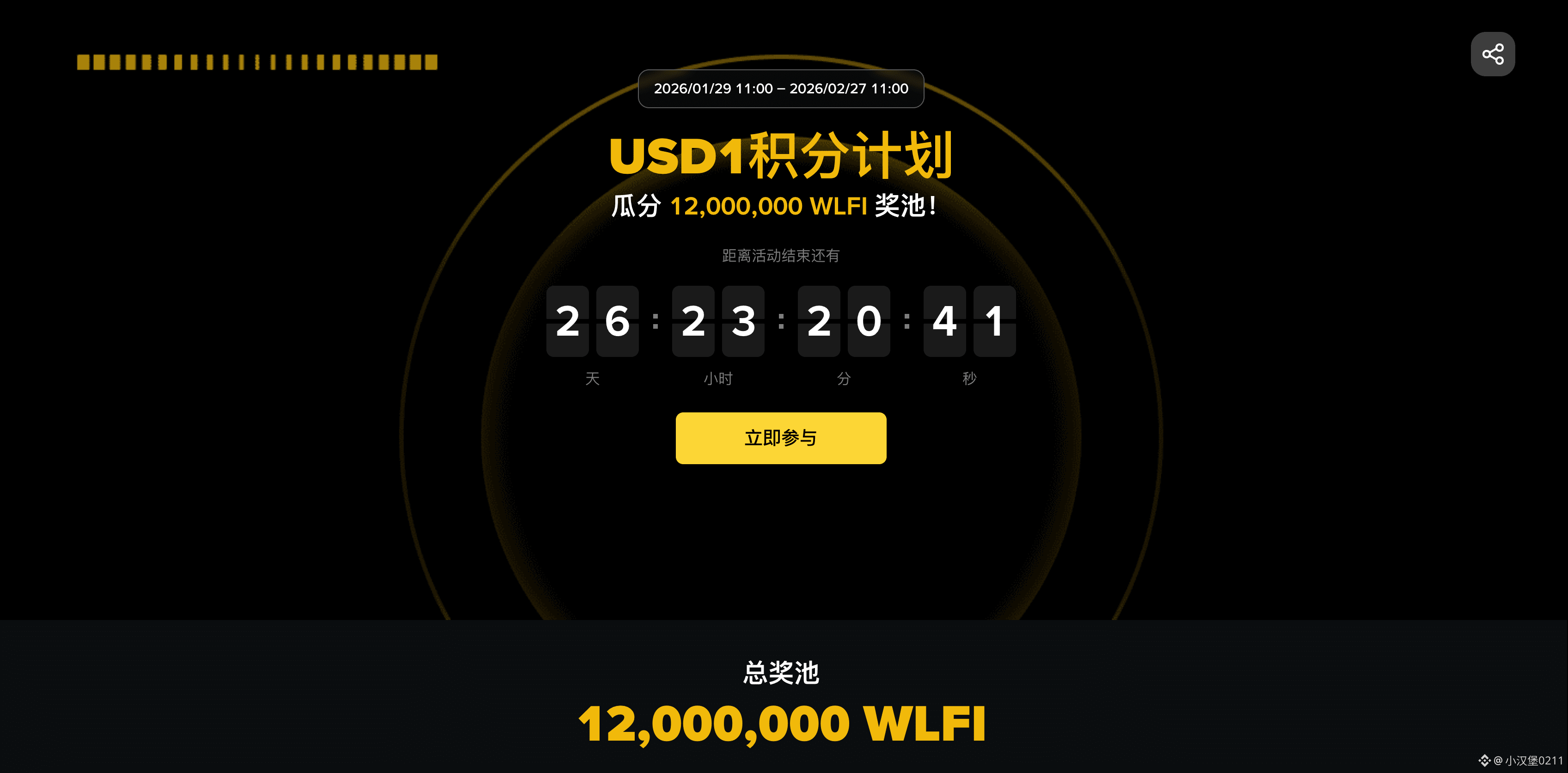 宝子们,中午好呀!最近打开币安准备调仓,发现 USD1 又上新活动了 ——1200 万枚 WLFI 的交易瓜分,这已经是近期第三波福利了吧?