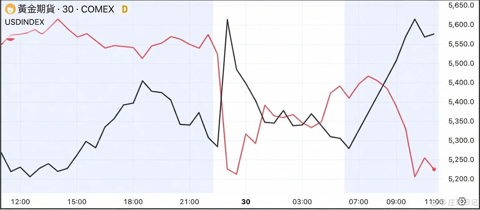 黄金过去24个小时的暴涨暴跌,在交易历史上是很少见的!有点玩链上meme的感觉了。