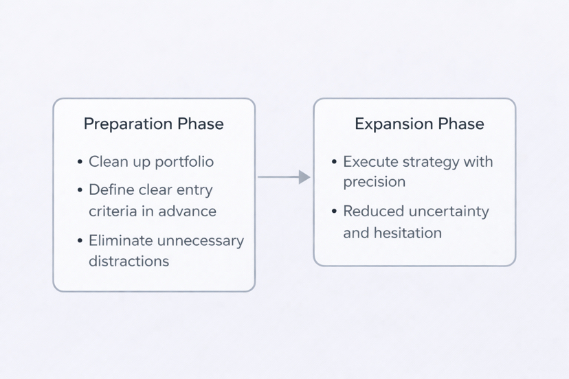 I trader forti non prevedono le stagioni. Si preparano durante la noia. Puliscano i portafogli. Riducano il rumore. Decidono in anticipo cosa merita capitale e cosa no. Trattano il tempo di attesa come tempo di costruzione, non come tempo di previsione.