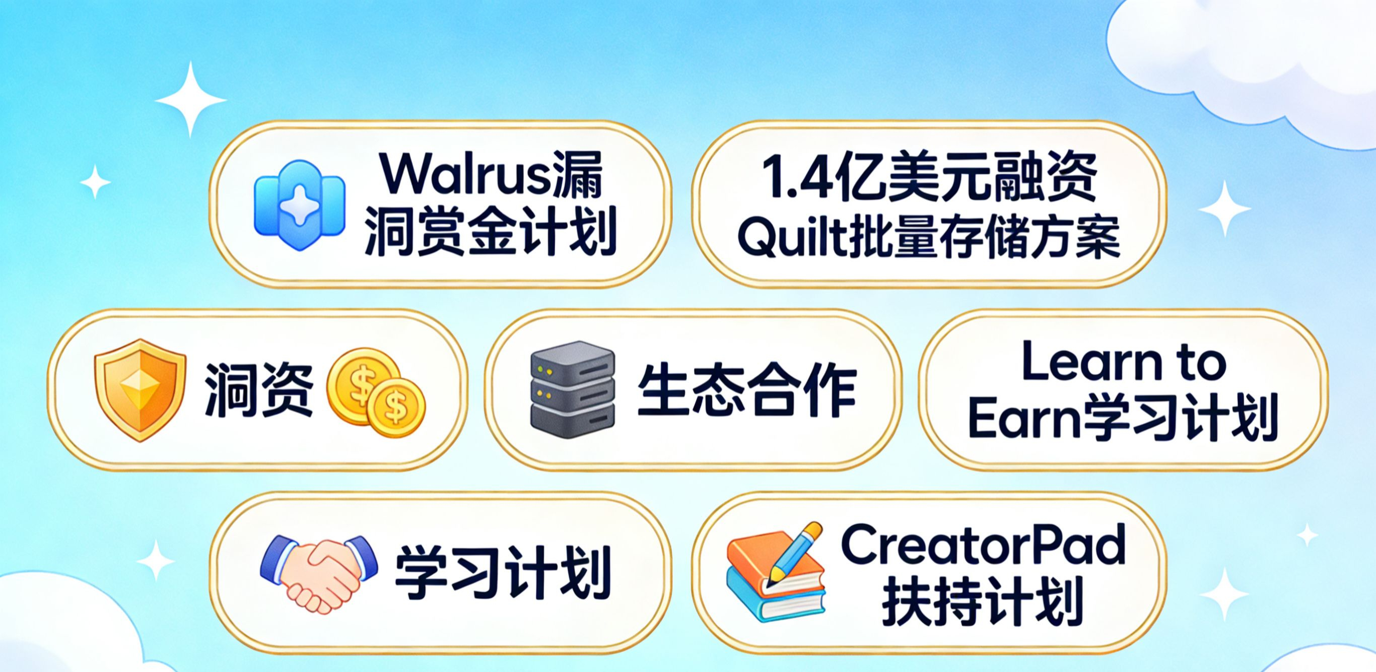 产品端更是迎来了重磅更新,1月30号同步推出了Quilt批量存储方案,彻底解决了小文件存储的痛点。以前存NFT图片、AI小数据这类小文件,要么成本高,要么操作麻烦,现在有了Quilt,能把上百个小文件打包存储,10KB的小文件存储成本直接降了420倍,Gas费也省了一大笔,而且不用解包就能单独访问每个文件,不管是开发者做项目,还是普通用户存数据,都变得特别方便,目前已经有不少NFT和AI项目用上了这个方案,反馈都特别好。#Walrus