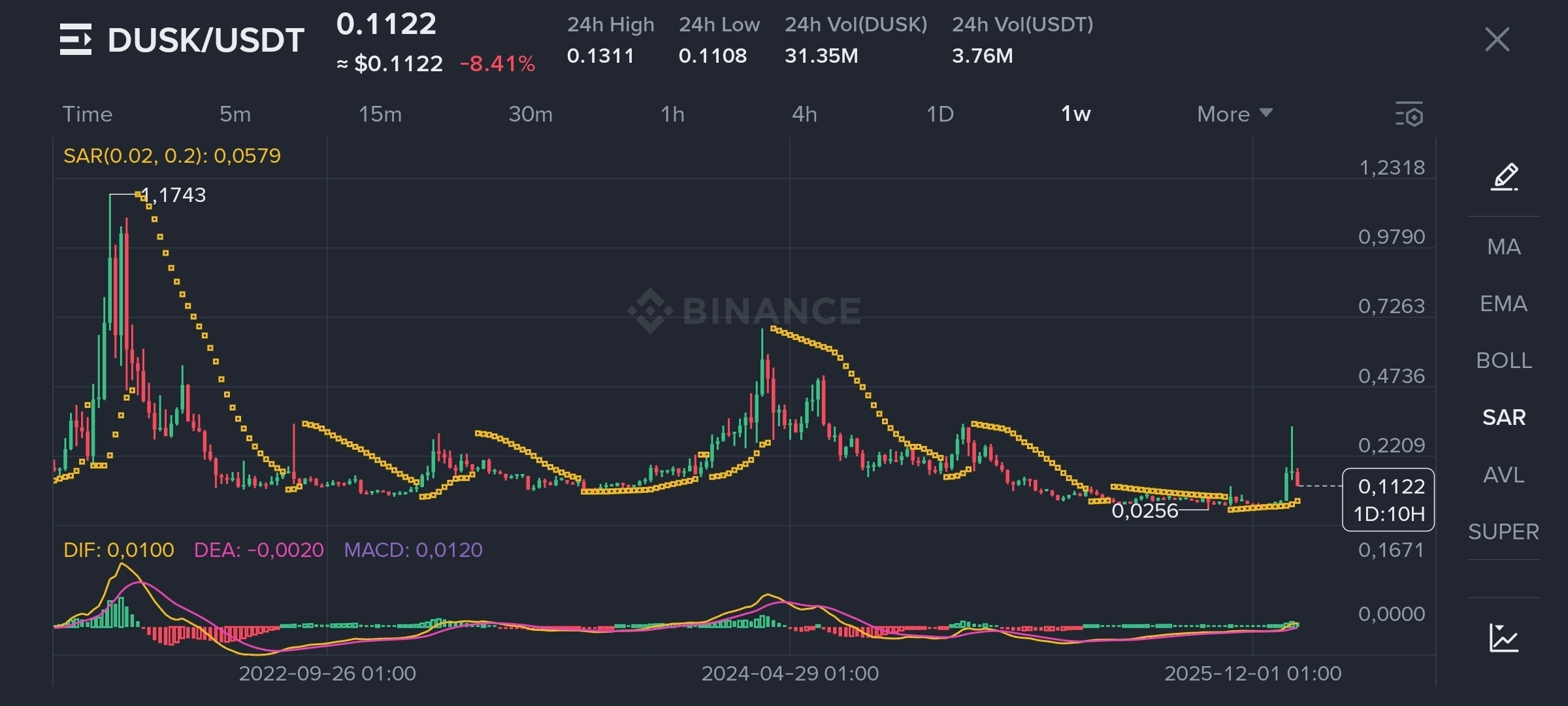 Tipicamente, Wave 4 retrocede ai livelli di Fibonacci 0.382 o 0.5. $DUSK sta attualmente lottando con la zona di $0.104 - $0.115. Se quest'area tiene, potremmo preparare il terreno per una Wave 5 finale, potenzialmente mirata a un ritorno a $0.28 o anche a un nuovo massimo a $0.50. Tuttavia, le Wave 4 sono notoriamente laterali e "a scatti". Non aspettarti una linea retta; aspettati una lotta per il controllo a questi livelli.