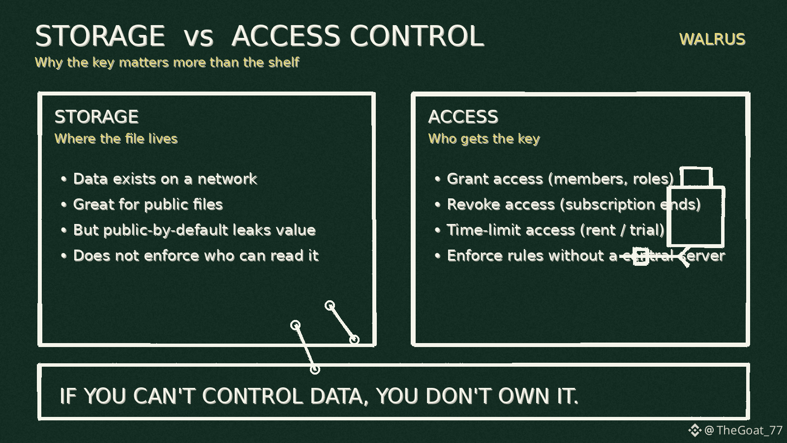 That’s why the moment I started looking at Walrus differently was when I stopped focusing on “storage” and started focusing on the missing layer most posts ignore: access control, the thing that decides whether a product can exist outside of experiments.