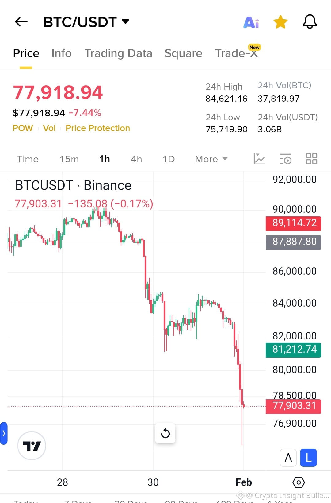 The Breakdown: We opened the day at approximately 84,100. The decline began at around 14: 00 (2:00 PM) when numerous selling activities drove the price down. The most critical point was that just several hours ago, the level of 80,000 that is quite an important support line and has been holding since the end of the 2025 was violated with barely any buyers revealed.