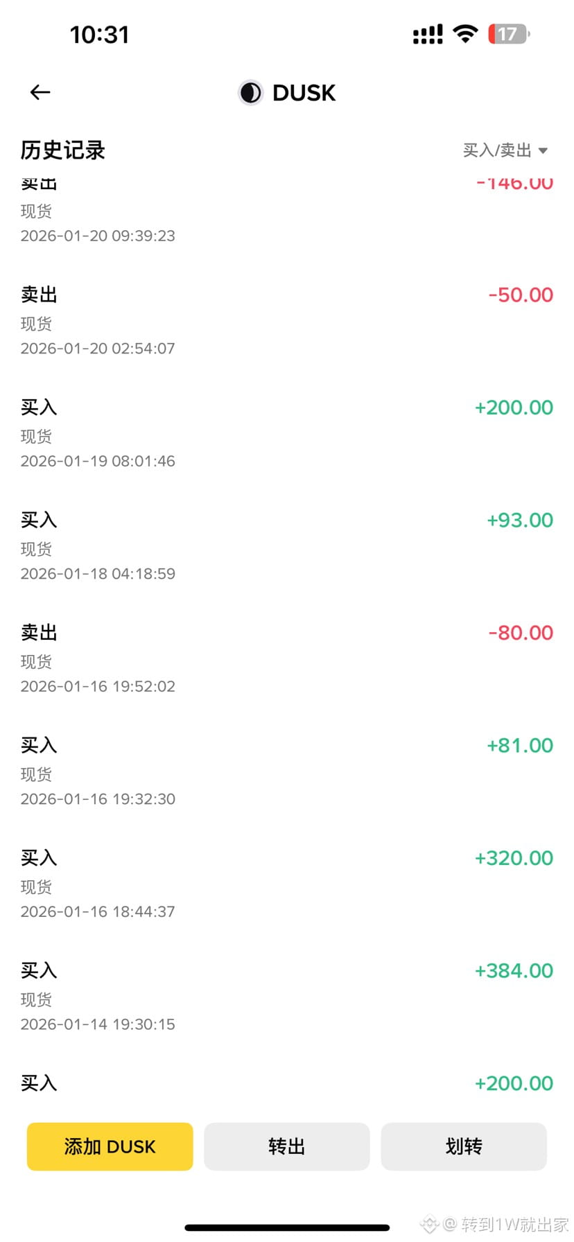 现在DUSK的价格一路下跌,看着账户里的浮亏,说不焦虑是假的,但我从没动过割肉的念头。一来是这些钱都是闲钱,亏了也不影响生活;二来是我相信,只要项目的基本面还在,现在的低价就是未来的筹码。就像存钱一样,我把每一次小补仓都当成是往“财富罐”里投硬币,虽然每次投的不多,但攒着攒着就会有惊喜。