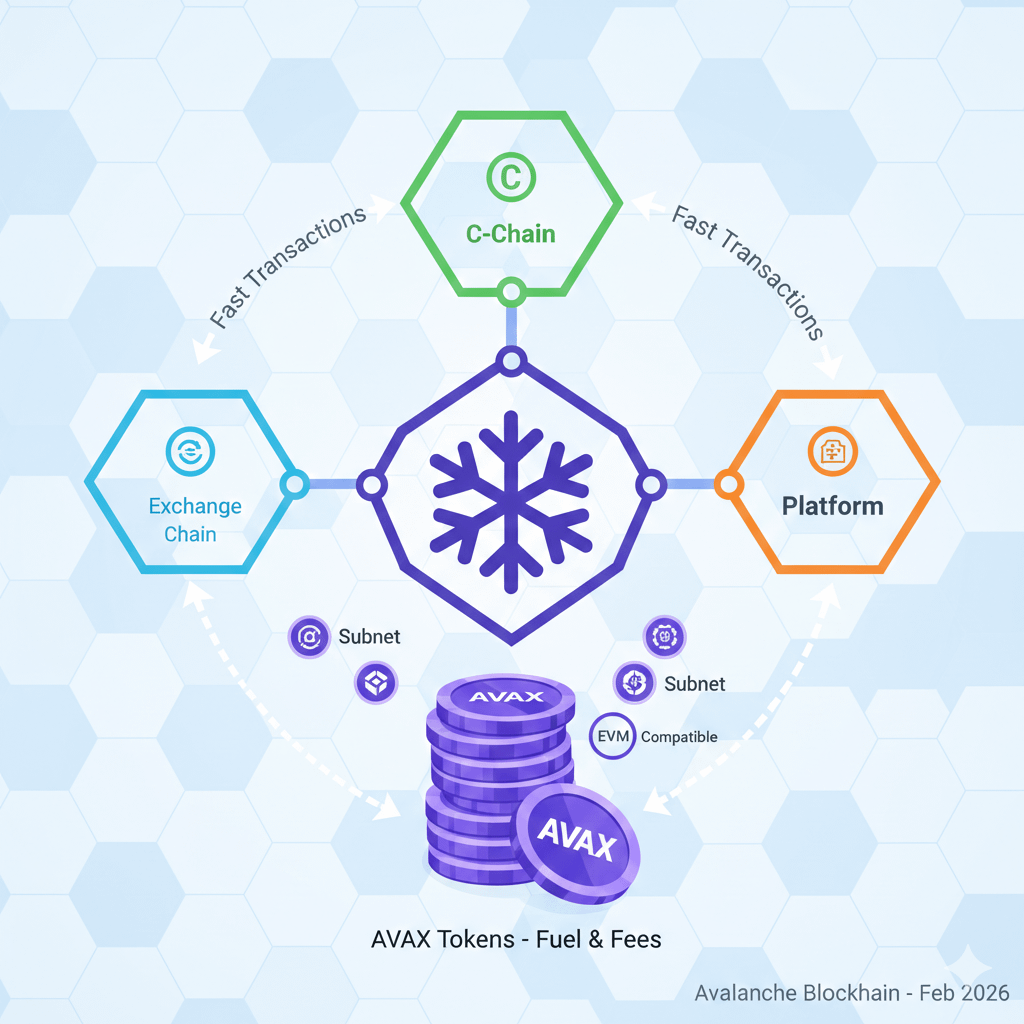 • La sua architettura a tre catene (X-Chain, C-Chain, P-Chain) separa asset, smart contract e coordinamento per prestazioni migliori.
