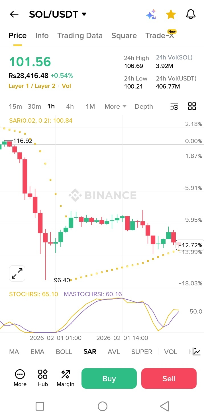 Solana sta mettendo alla prova i nervi di ogni trader oggi! Dopo un grande ribasso che ha fatto scendere i prezzi verso $101, il livello psicologico di $100 è l'unica cosa che ci separa da una correzione più profonda.