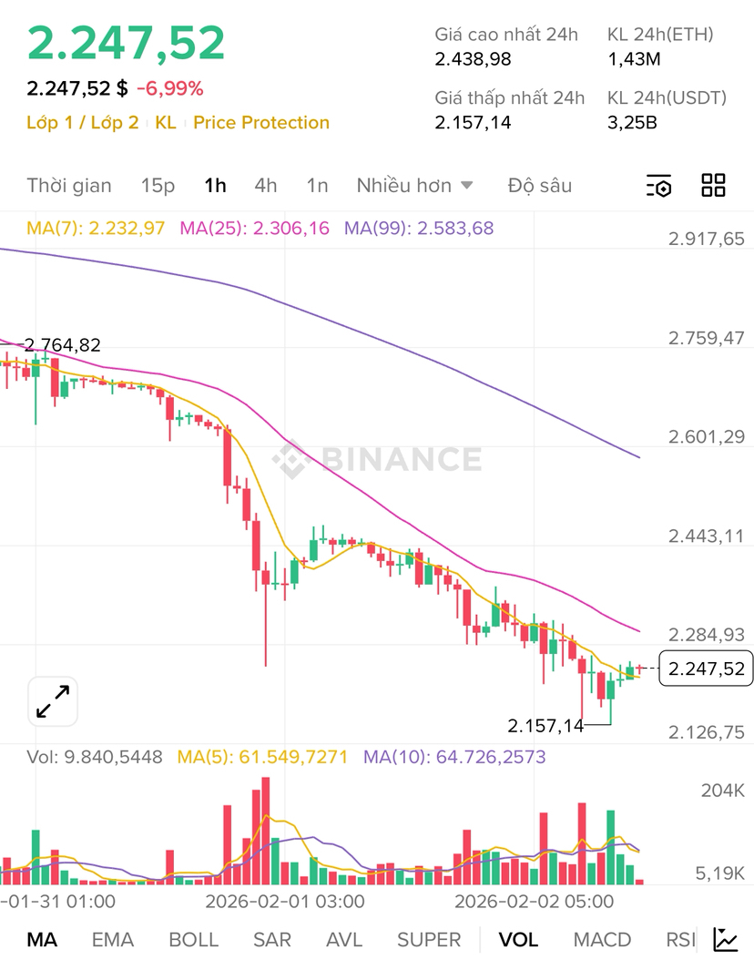 Con l'arrivo del 01/02/2026, la caduta non si ferma e continua con un ulteriore calo del -7,38%.Il 02/02 continua a essere immerso nel rosso. Anche se le statistiche riportano una diminuzione temporanea del -1,03%, sulla grafica dei prezzi reali, la pressione di vendita rimane forte con una diminuzione nelle 24 ore fino al -6,99%.