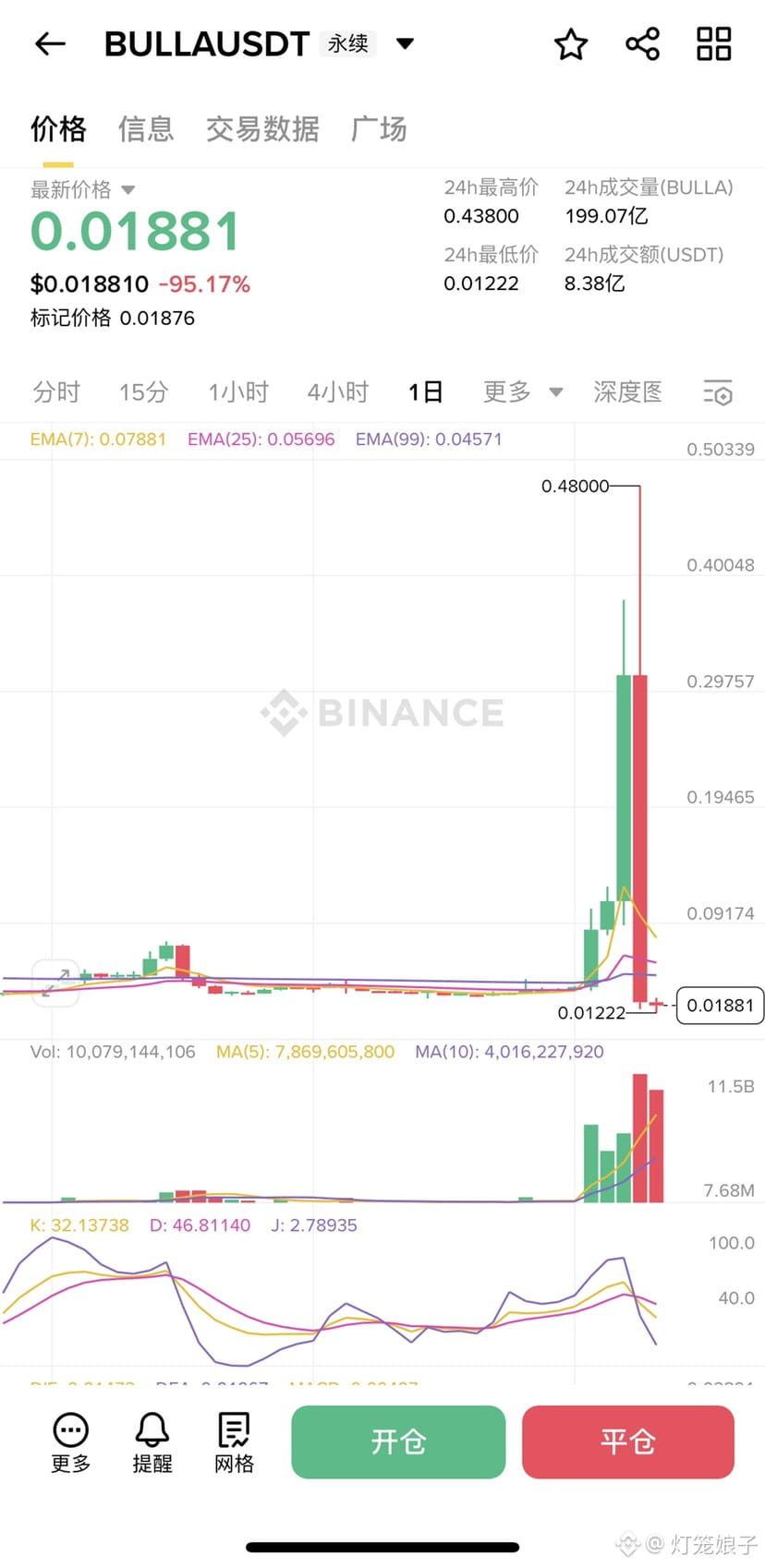 • 日线视角: 标准的“A字杀”。怎么上去的,怎么下来,甚至跌得更深。单日跌幅95%,意味着多头流动性被瞬间抽干,上方全是套牢盘,这里没有“趋势”,只有“情绪”。