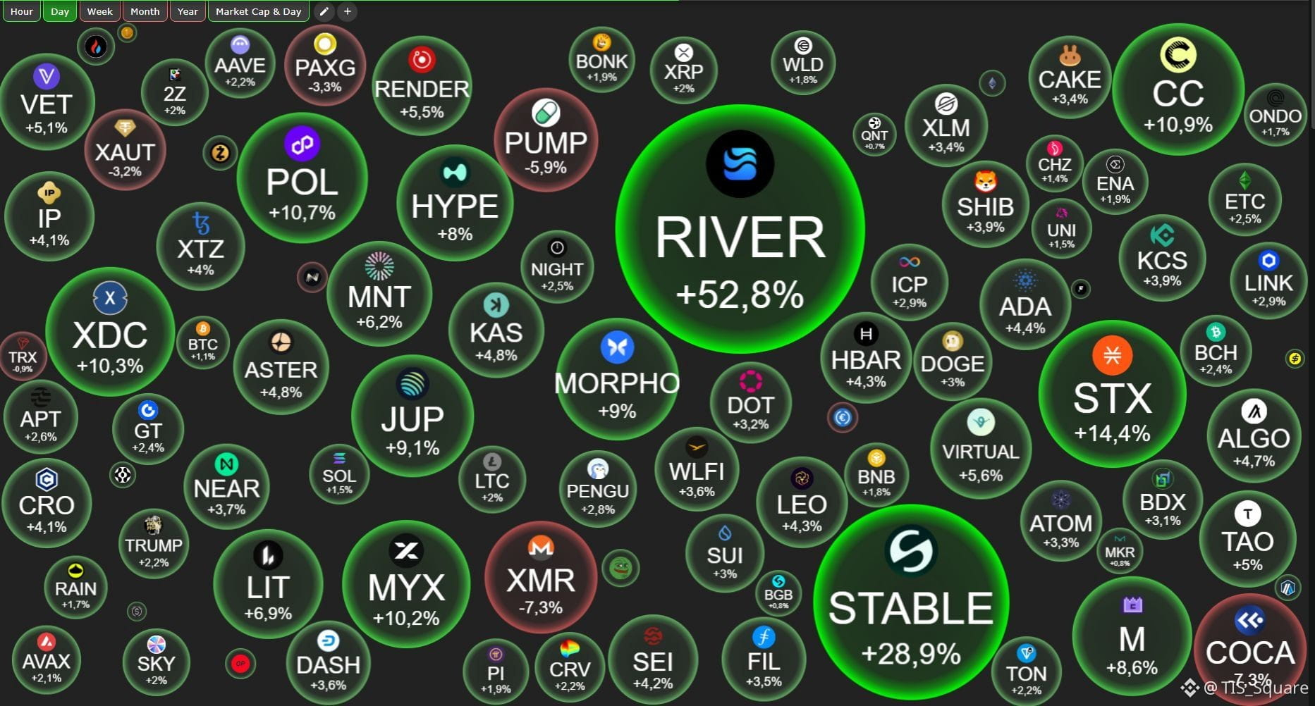 $RIVER : Là tâm điểm của sự chú ý với mức tăng trưởng hơn 50%, chiếm trọn Spotlight ở trung tâm biểu đồ.