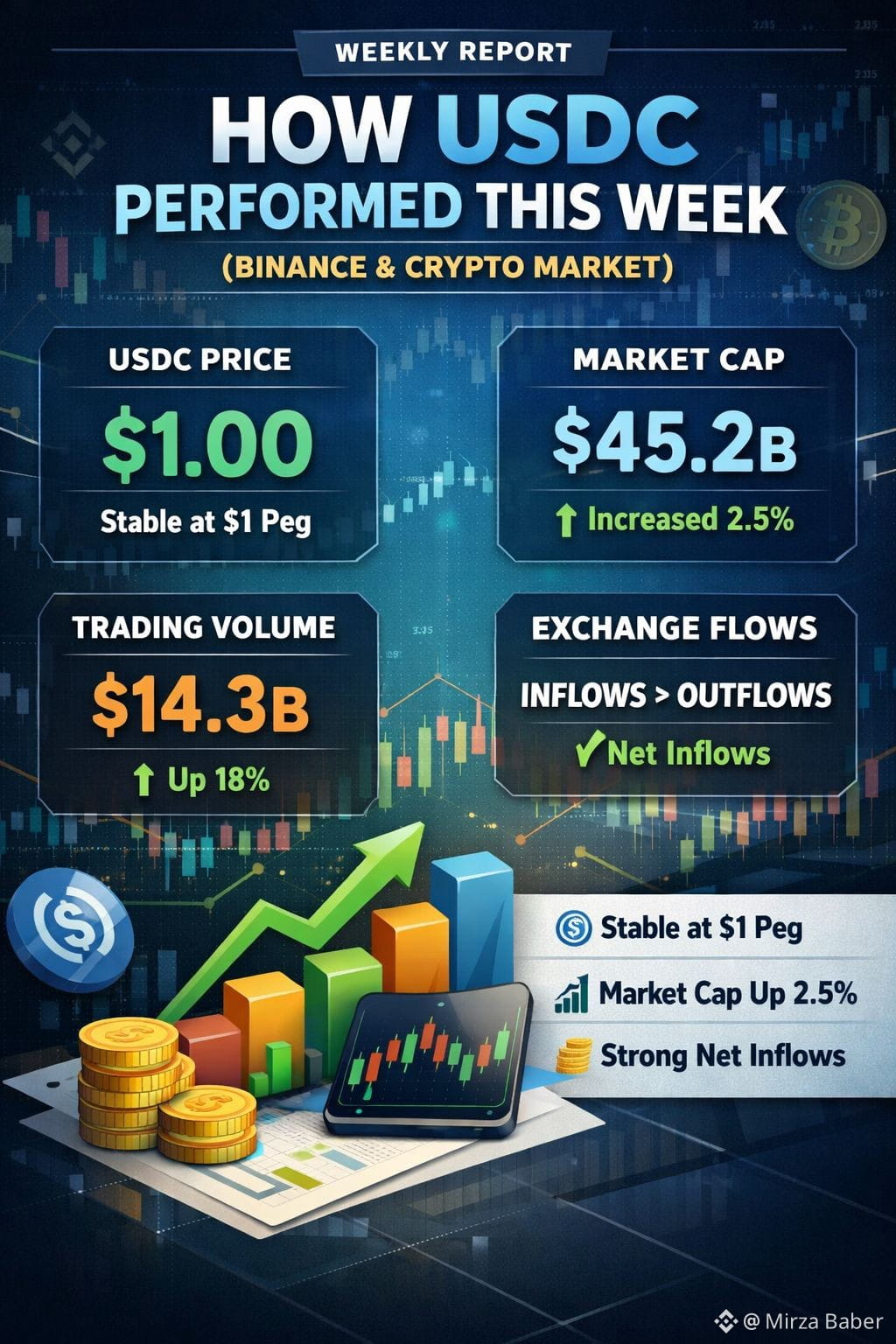 👉 USDC stayed essentially at $1.00 all week, maintained strong trading volumes, and continued to see heavy exchange and institutional activity — the hallmark of a stable and widely used crypto asset.
