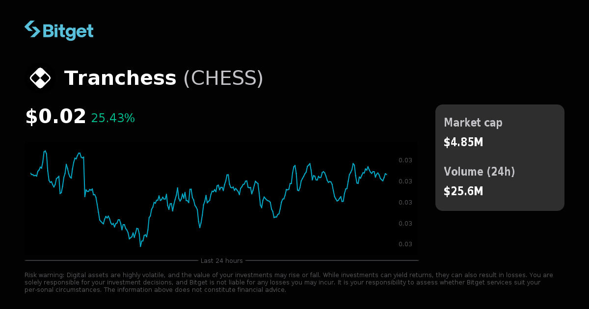 ChessCoin (ticker: CHESS) è un token di criptovaluta di nicchia che è stato elencato su alcuni tracker di prezzo pubblici come CoinGecko e CoinMarketCap. Ha una capitalizzazione di mercato relativamente bassa e viene scambiato leggermente rispetto ad asset maggiori, il che significa che la liquidità e la volatilità possono essere elevate. �