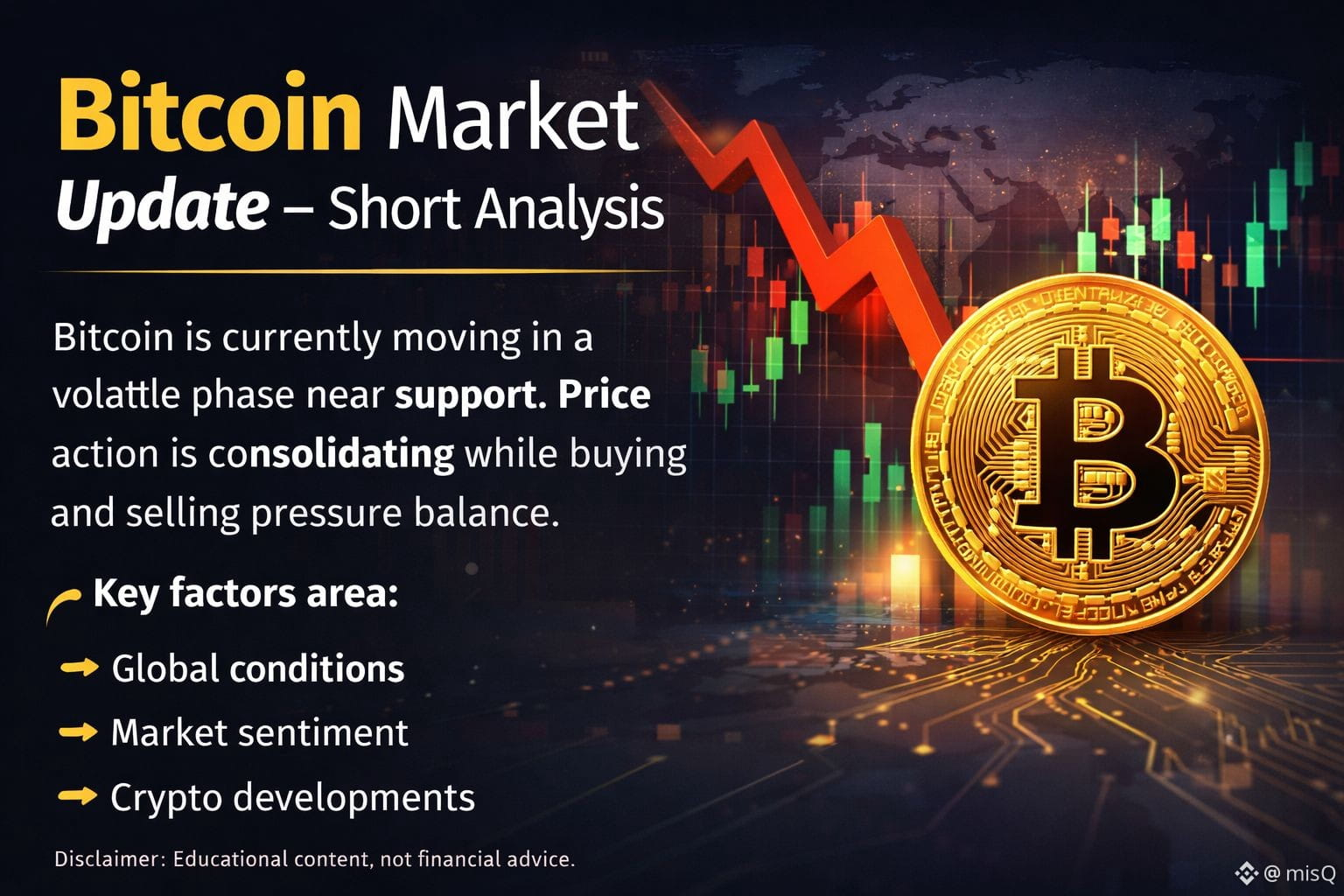 $BTC Bitcoin is currently showing increased volatility as the market faces selling pressure. The price is trading near a critical support zone, indicating uncertainty among investors. Key technical indicators suggest that Bitcoin may be approaching an oversold area, which could lead to a short-term bounce if buying momentum returns.