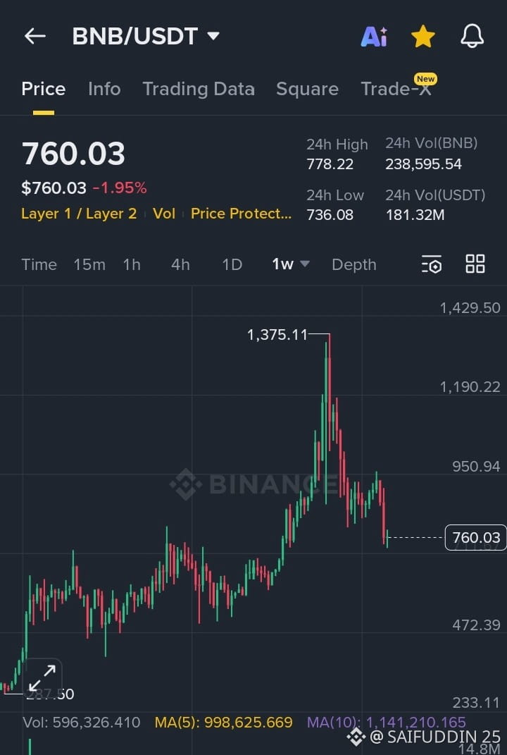আজকে BNB প্রাইস $770-$775 রেঞ্জে। গত ২৪ ঘণ্টায় প্রায় ২% বেড়েছে, তবে সাপ্তাহিক চার্টে এখনো প্রেশারে আছে।📉