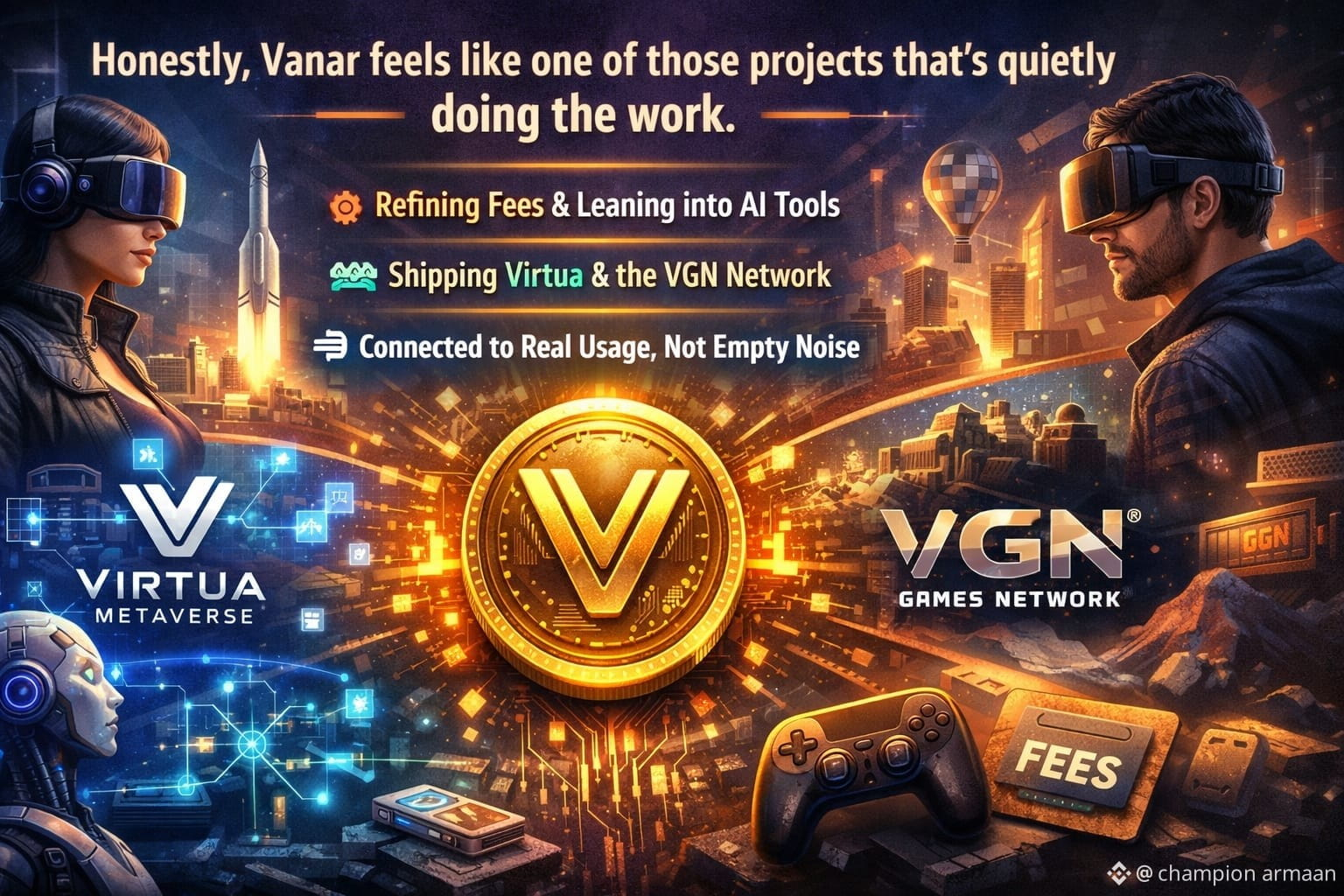 The network is powered by the VANRY token which plays a vital role across the ecosystem. VANRY is used for transactions smart contract execution and participation within applications built on Vanar Chain. It is not designed to exist without purpose. It moves value enables interaction and supports everything that happens on the network. I see VANRY as the energy that keeps the ecosystem alive and flowing.Gaming is one of the strongest expressions of Vanar vision. Through platforms like the Virtua Metaverse and the VGN games network Vanar shows how blockchain can blend naturally into immersive digital worlds. Players can own digital assets explore environments and move between experiences without feeling technical barriers. These worlds are designed to feel emotional engaging and alive rather than mechanical or forced.